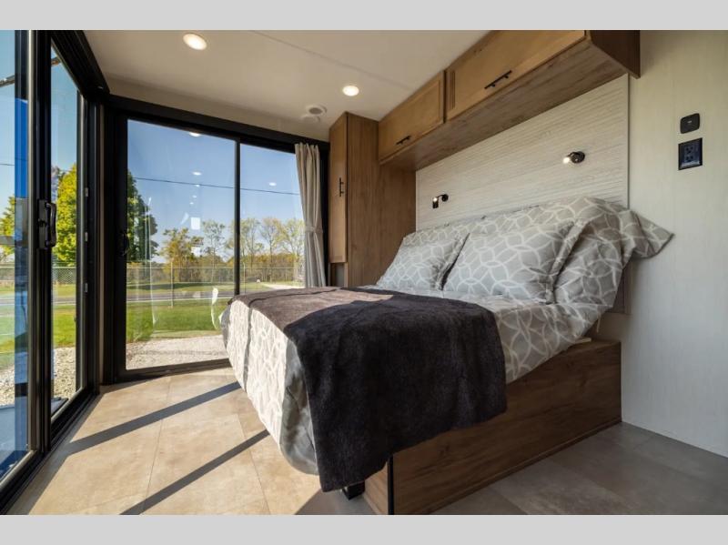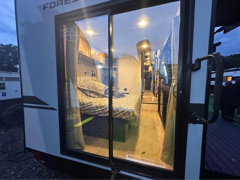 Enjoy comforts of home wherever you decide to roam in a Timberwolf destination trailer by Forest River. The seamless roofing membrane with heat reflectivity and power gear frame technology provide a durable foundation to your RV. You will also appreciate the exclusive solar thermo controlled reflective tinted safety glass windows, tire pressure monitors, and an on-demand tankless water heater to make extended stays easier than ever. Inside, the night shades will provide your crew with privacy, while the LED lights illuminate your space. There are also seamless countertops, along with a premium bedding ensemble and comforter, USB charging stations, a supersized central A/C unit, and many more comforts!