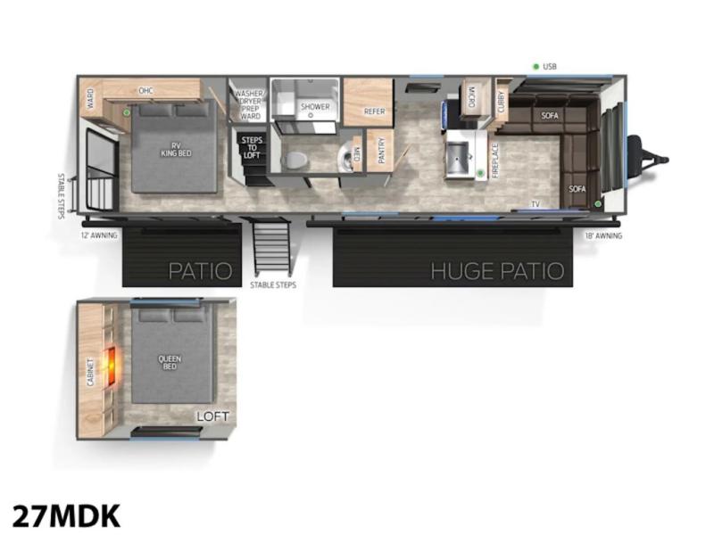 Forest River Cherokee Timberwolf Mini Loft destination trailer 27MDK highlights: