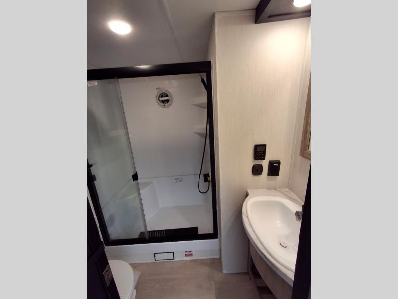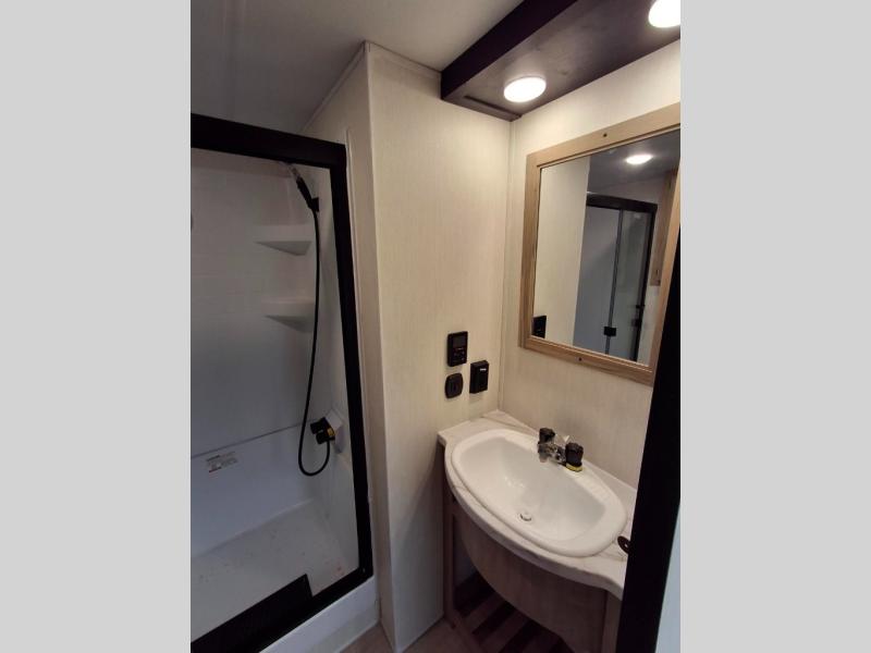 Enjoy comforts of home wherever you decide to roam in a Timberwolf destination trailer by Forest River. The seamless roofing membrane with heat reflectivity and power gear frame technology provide a durable foundation to your RV. You will also appreciate the exclusive solar thermo controlled reflective tinted safety glass windows, tire pressure monitors, and an on-demand tankless water heater to make extended stays easier than ever. Inside, the night shades will provide your crew with privacy, while the LED lights illuminate your space. There are also seamless countertops, along with a premium bedding ensemble and comforter, USB charging stations, a supersized central A/C unit, and many more comforts!