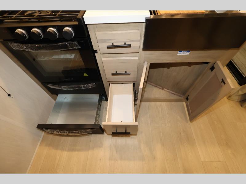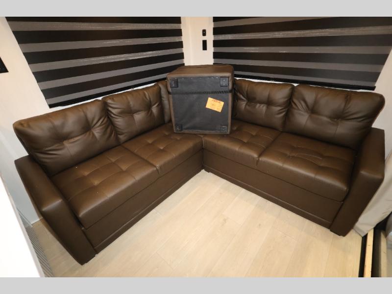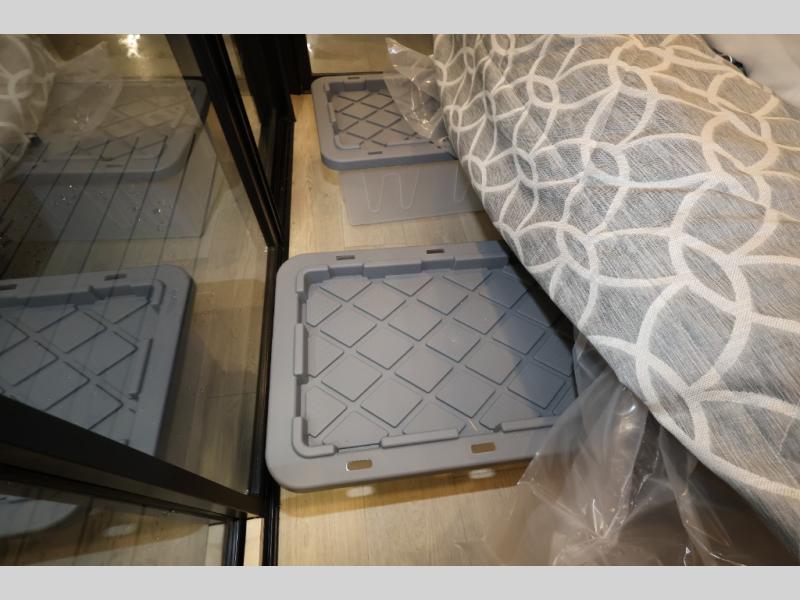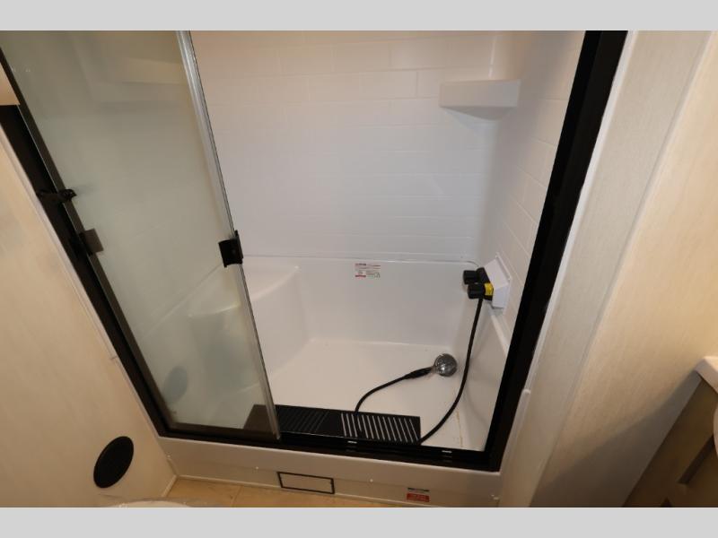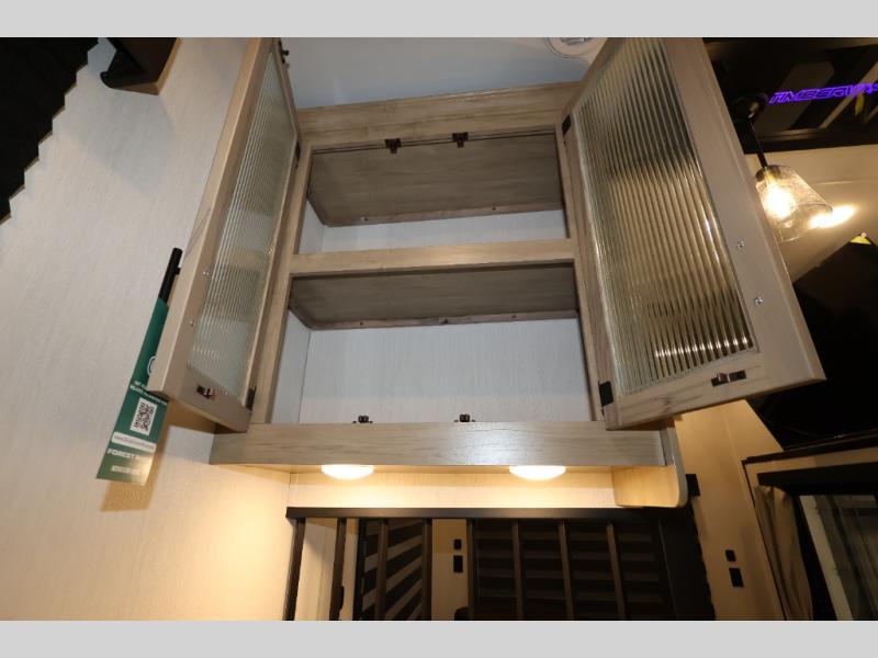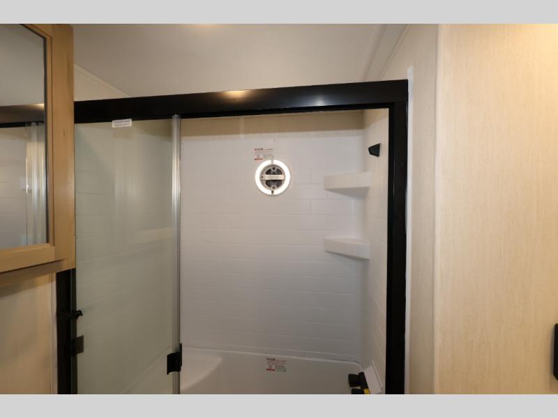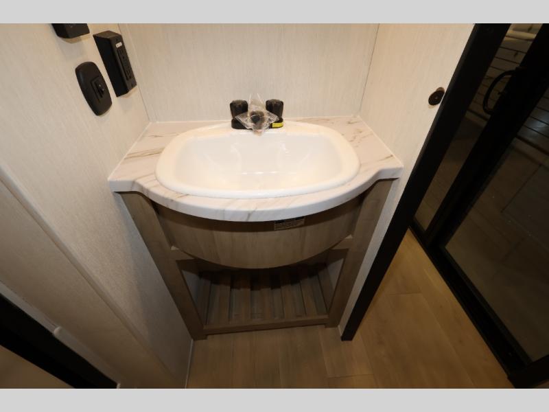 Enjoy comforts of home wherever you decide to roam in a Timberwolf destination trailer by Forest River. The seamless roofing membrane with heat reflectivity and power gear frame technology provide a durable foundation to your RV. You will also appreciate the exclusive solar thermo controlled reflective tinted safety glass windows, tire pressure monitors, and an on-demand tankless water heater to make extended stays easier than ever. Inside, the night shades will provide your crew with privacy, while the LED lights illuminate your space. There are also seamless countertops, along with a premium bedding ensemble and comforter, USB charging stations, a supersized central A/C unit, and many more comforts!