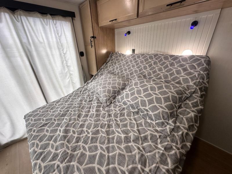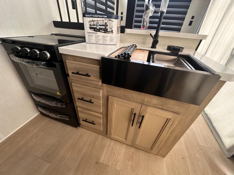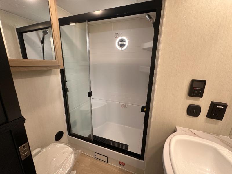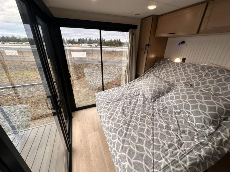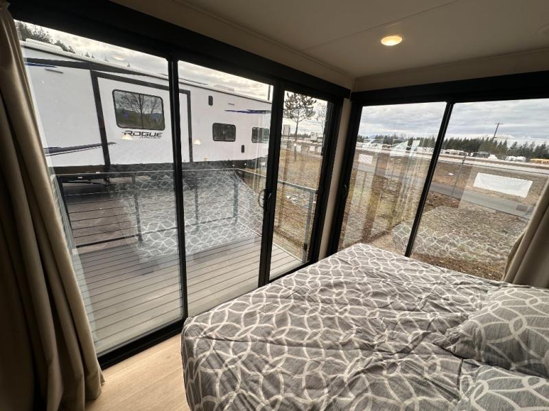 Enjoy comforts of home wherever you decide to roam in a Timberwolf destination trailer by Forest River. The seamless roofing membrane with heat reflectivity and power gear frame technology provide a durable foundation to your RV. You will also appreciate the exclusive solar thermo controlled reflective tinted safety glass windows, tire pressure monitors, and an on-demand tankless water heater to make extended stays easier than ever. Inside, the night shades will provide your crew with privacy, while the LED lights illuminate your space. There are also seamless countertops, along with a premium bedding ensemble and comforter, USB charging stations, a supersized central A/C unit, and many more comforts!