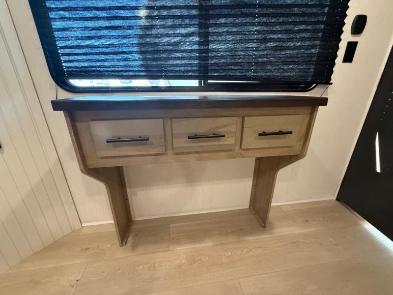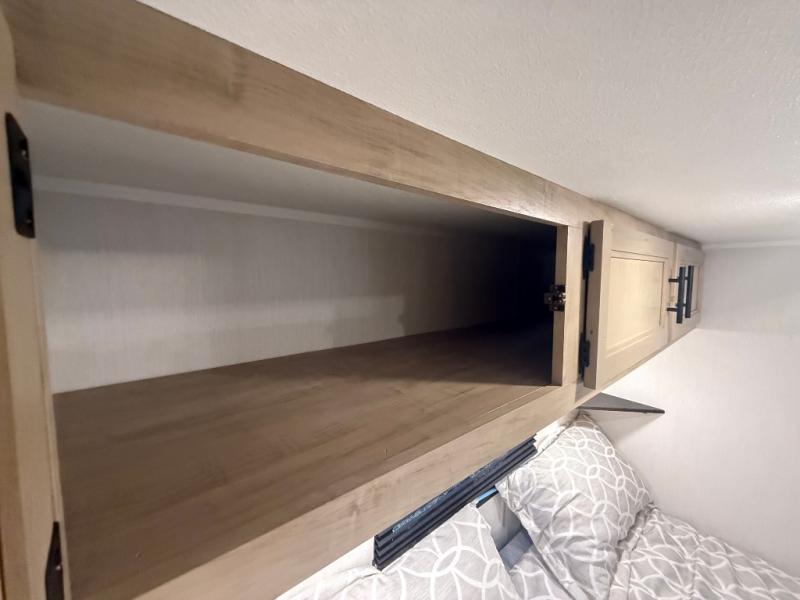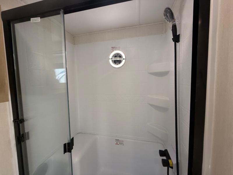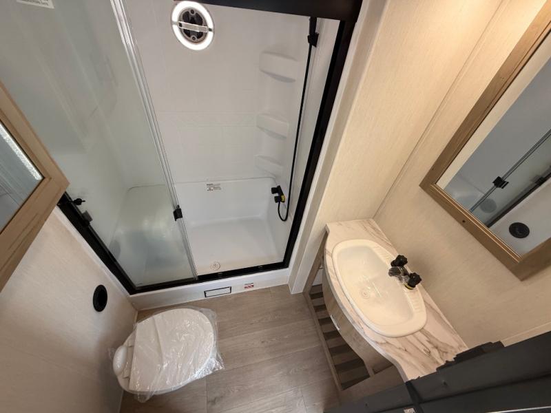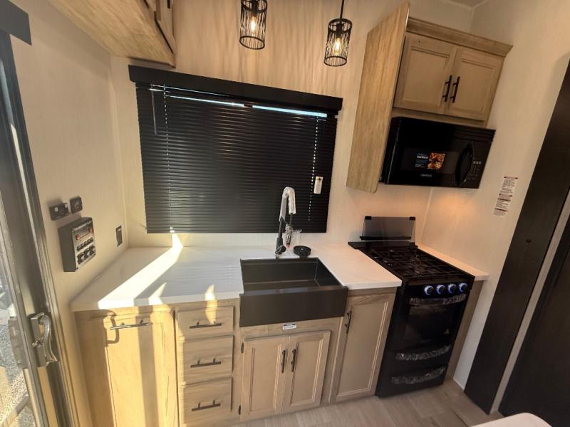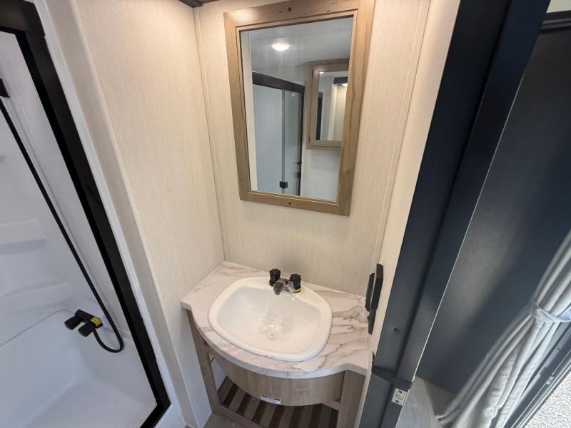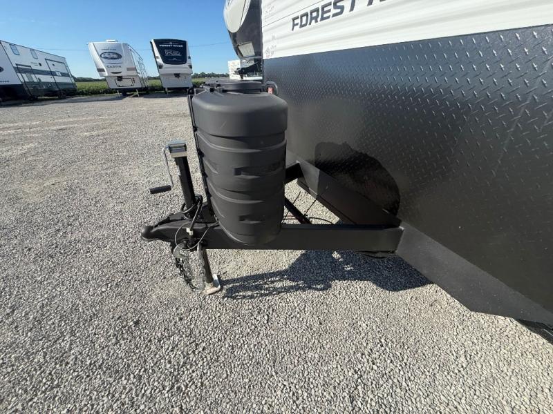 Enjoy comforts of home wherever you decide to roam in a Timberwolf destination trailer by Forest River. The seamless roofing membrane with heat reflectivity and power gear frame technology provide a durable foundation to your RV. You will also appreciate the exclusive solar thermo controlled reflective tinted safety glass windows, tire pressure monitors, and an on-demand tankless water heater to make extended stays easier than ever. Inside, the night shades will provide your crew with privacy, while the LED lights illuminate your space. There are seamless countertops, along with a premium bedding ensemble and comforter, USB charging stations, a supersized central A/C unit, and many more comforts!