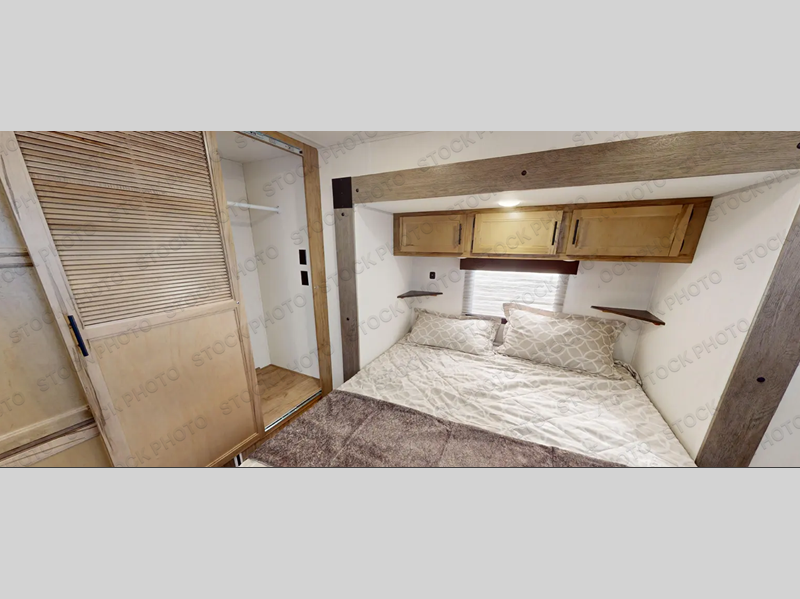 Enjoy comforts of home wherever you decide to roam in a Timberwolf destination trailer by Forest River. The seamless roofing membrane with heat reflectivity and power gear frame technology provide a durable foundation to your RV. You will also appreciate the exclusive solar thermo controlled reflective tinted safety glass windows, tire pressure monitors, and an on-demand tankless water heater to make extended stays easier than ever. Inside, the night shades will provide your crew with privacy, while the LED lights illuminate your space. There are seamless countertops, along with a premium bedding ensemble and comforter, USB charging stations, a supersized central A/C unit, and many more comforts!