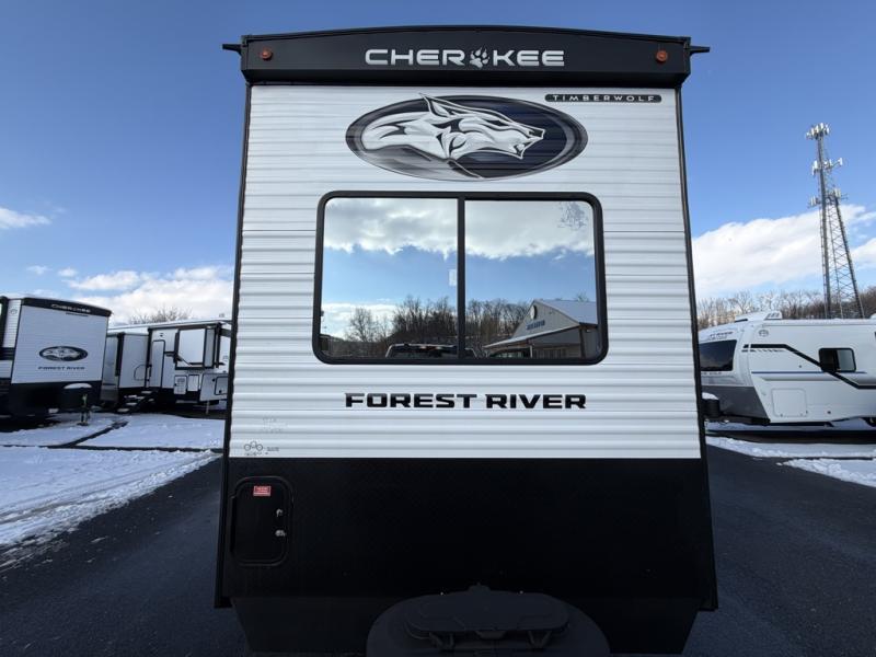 Enjoy comforts of home wherever you decide to roam in a Cherokee Timberwolf destination trailer by Forest River. Each trailer is made with quality construction materials, like with all Forest River products, plus you'll find convenient exterior features to make extended stays easier than ever. You will love the interior with its cozy sleeping arrangements, full bath and kitchen amenities, plus plenty of storage spaces for food, clothing, gear and more! With mini loft and full-size destination trailers available, you're sure to find a Cherokee Timberwolf that fits your needs!