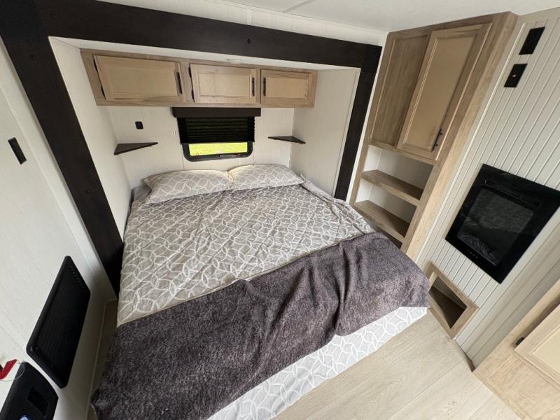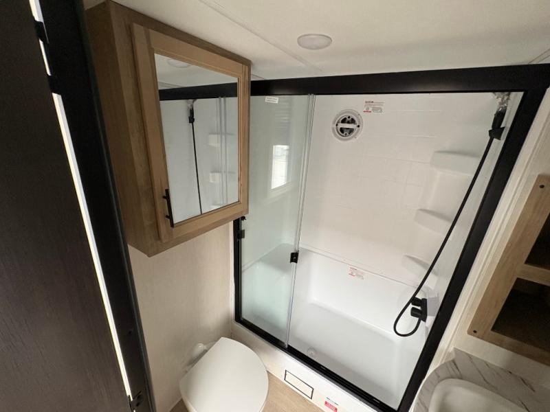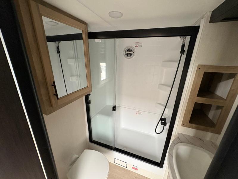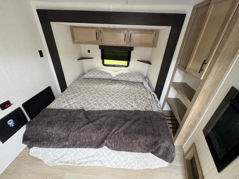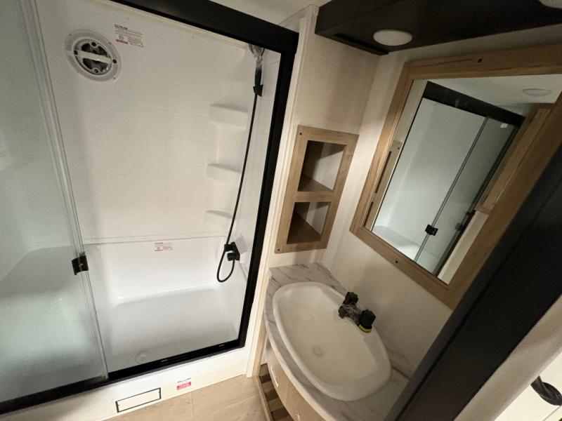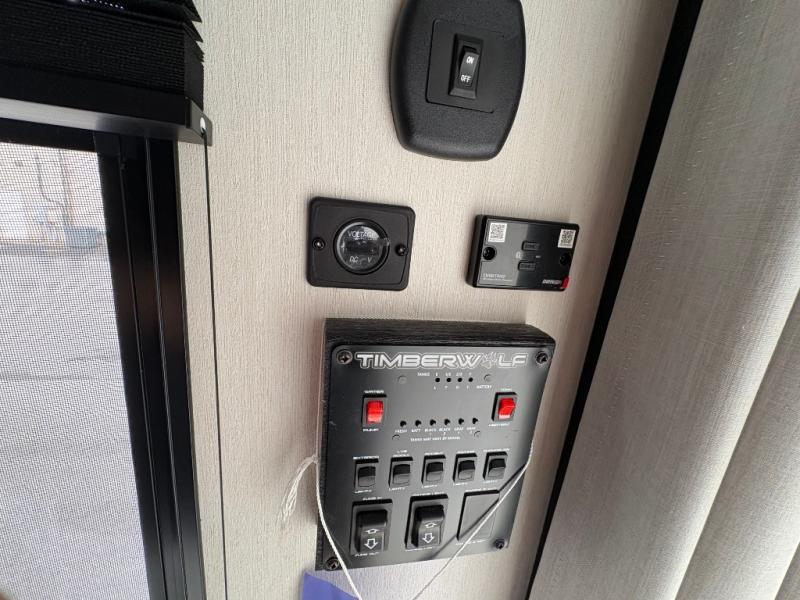 Enjoy comforts of home wherever you decide to roam in a Timberwolf destination trailer by Forest River. The seamless roofing membrane with heat reflectivity and power gear frame technology provide a durable foundation to your RV. You will also appreciate the exclusive solar thermo controlled reflective tinted safety glass windows, tire pressure monitors, and an on-demand tankless water heater to make extended stays easier than ever. Inside, the night shades will provide your crew with privacy, while the LED lights illuminate your space. There are also seamless countertops, along with a premium bedding ensemble and comforter, USB charging stations, a supersized central A/C unit, and many more comforts!