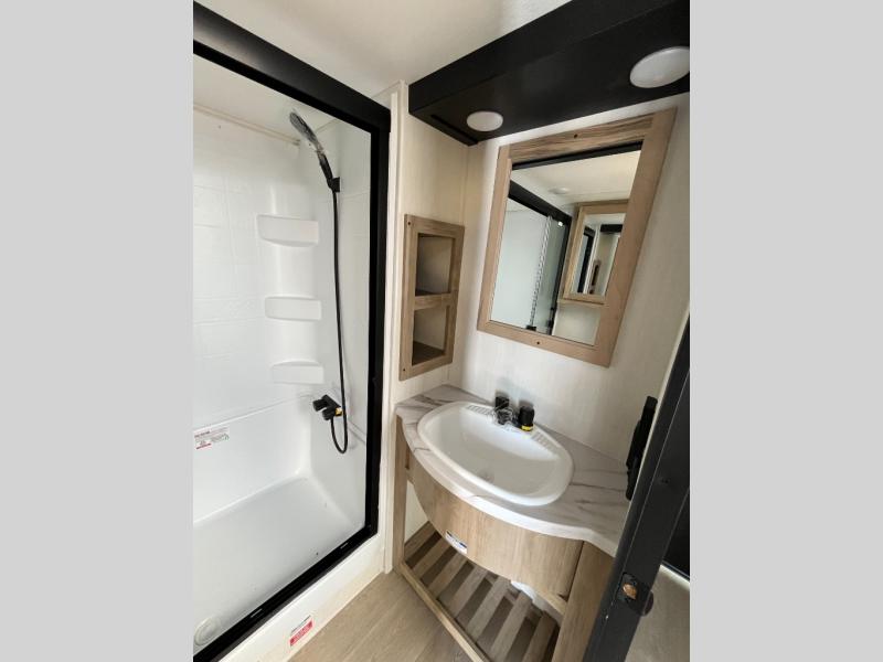 Enjoy comforts of home wherever you decide to roam in a Timberwolf destination trailer by Forest River. The seamless roofing membrane with heat reflectivity and power gear frame technology provide a durable foundation to your RV. You will also appreciate the exclusive solar thermo controlled reflective tinted safety glass windows, tire pressure monitors, and an on-demand tankless water heater to make extended stays easier than ever. Inside, the night shades will provide your crew with privacy, while the LED lights illuminate your space. There are also seamless countertops, along with a premium bedding ensemble and comforter, USB charging stations, a supersized central A/C unit, and many more comforts!