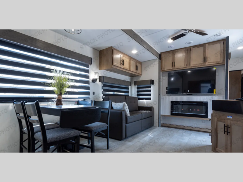 Spacious and comfortable is how you will describe this destination travel trailer featuring triple slides, two full baths, and a spacious combined kitchen and living area thanks to the large slide here featuring a free standing dinette and sofa. The kitchen includes everything you need to comfortably cook while you are away, and allows you to make meals for your family just like at home. There is a large pantry where you can keep plenty of snacks and dry goods for your trip. In the rear of the coach, there is a private bedroom featuring a queen bed slide for added space, comfortable sleeping, as well as ample storage between a dresser and wardrobe for your clothing. In the very back, a master suite bath featuring a vanity with sink, a shower with a seat, and linen storage for your towels and toiletries. This front bedroom also features a king bed slide!