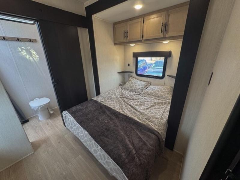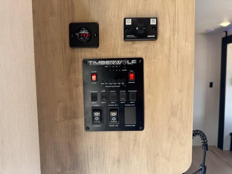 Enjoy comforts of home wherever you decide to roam in a Timberwolf destination trailer by Forest River. The seamless roofing membrane with heat reflectivity and power gear frame technology provide a durable foundation to your RV. You will also appreciate the exclusive solar thermo controlled reflective tinted safety glass windows, tire pressure monitors, and an on-demand tankless water heater to make extended stays easier than ever. Inside, the night shades will provide your crew with privacy, while the LED lights illuminate your space. There are seamless countertops, along with a premium bedding ensemble and comforter, USB charging stations, a supersized central A/C unit, and many more comforts!