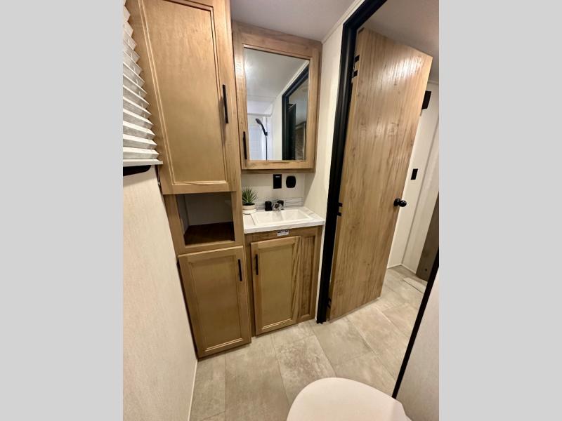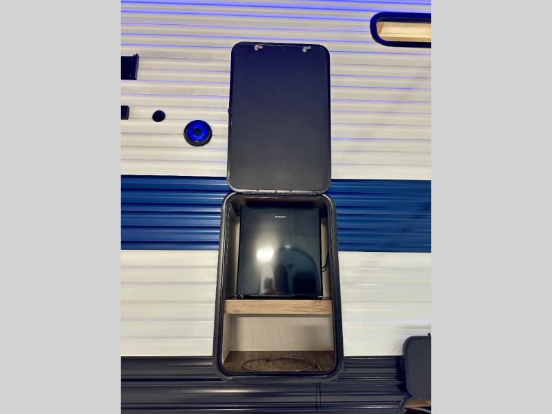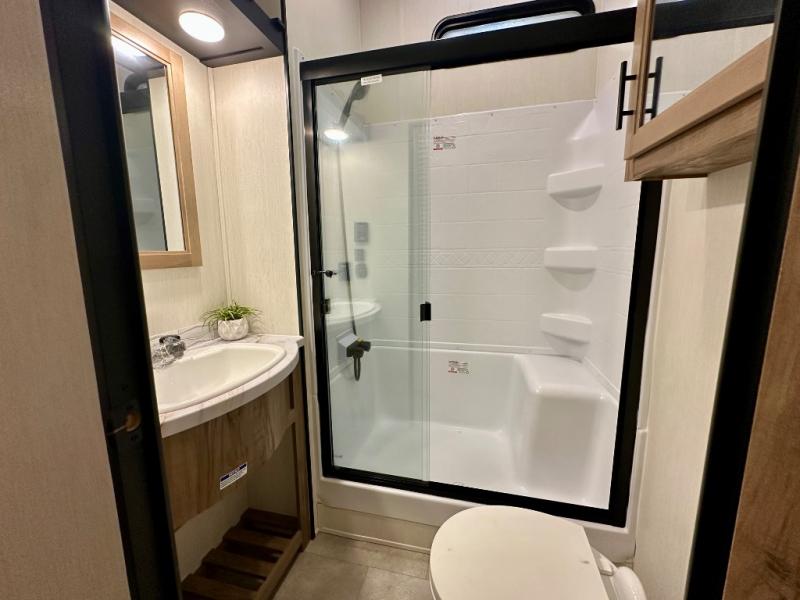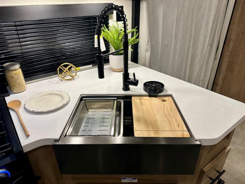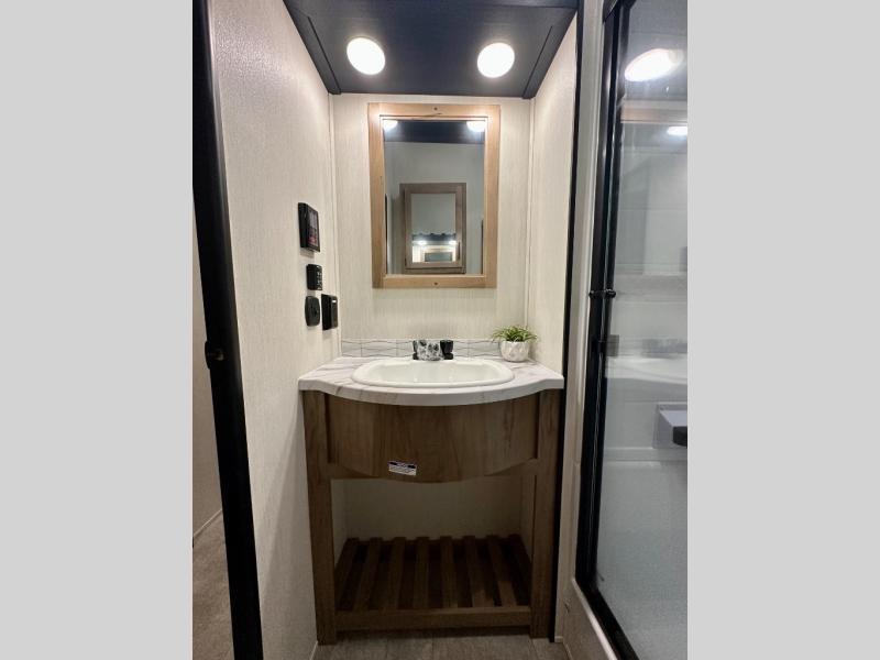Enjoy comforts of home wherever you decide to roam in a Timberwolf destination trailer by Forest River. The seamless roofing membrane with heat reflectivity and power gear frame technology provide a durable foundation to your RV. You will also appreciate the exclusive solar thermo controlled reflective tinted safety glass windows, tire pressure monitors, and an on-demand tankless water heater to make extended stays easier than ever. Inside, the night shades will provide your crew with privacy, while the LED lights illuminate your space. There are seamless countertops, along with a premium bedding ensemble and comforter, USB charging stations, a supersized central A/C unit, and many more comforts!