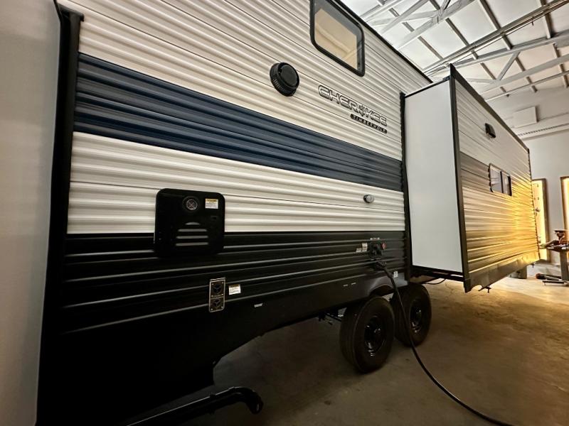 Enjoy comforts of home wherever you decide to roam in a Cherokee Timberwolf destination trailer by Forest River. Each trailer is made with quality construction materials, like with all Forest River products, plus you'll find convenient exterior features to make extended stays easier than ever. You will love the interior with its cozy sleeping arrangements, full bath and kitchen amenities, plus plenty of storage spaces for food, clothing, gear and more! With mini loft and full-size destination trailers available, you're sure to find a Cherokee Timberwolf that fits your needs!