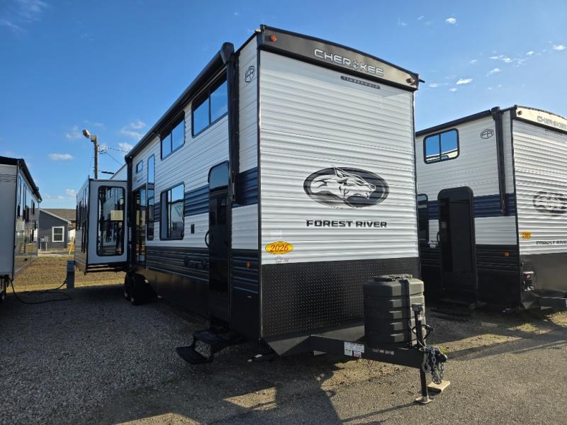Enjoy comforts of home wherever you decide to roam in a Cherokee Timberwolf destination trailer by Forest River. Each trailer is made with quality construction materials, like with all Forest River products, plus you'll find convenient exterior features to make extended stays easier than ever. You will love the interior with its cozy sleeping arrangements, full bath and kitchen amenities, plus plenty of storage spaces for food, clothing, gear and more! With mini loft and full-size destination trailers available, you're sure to find a Cherokee Timberwolf that fits your needs!