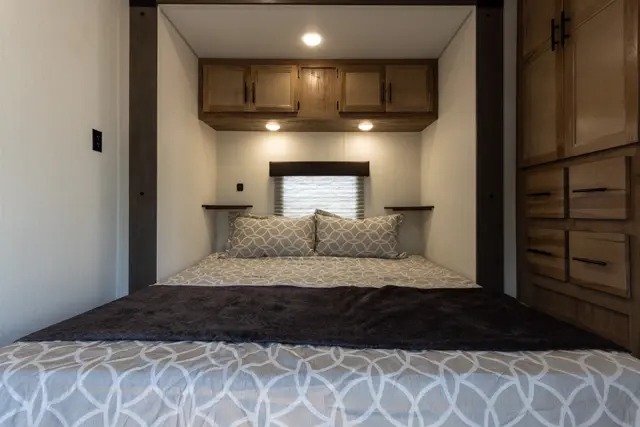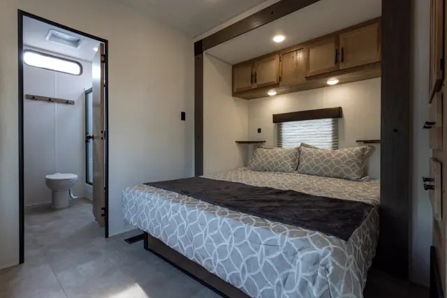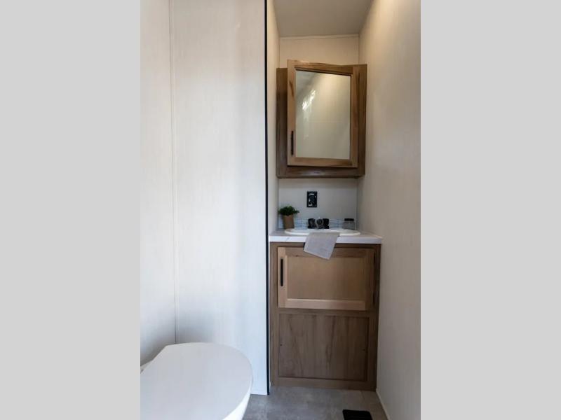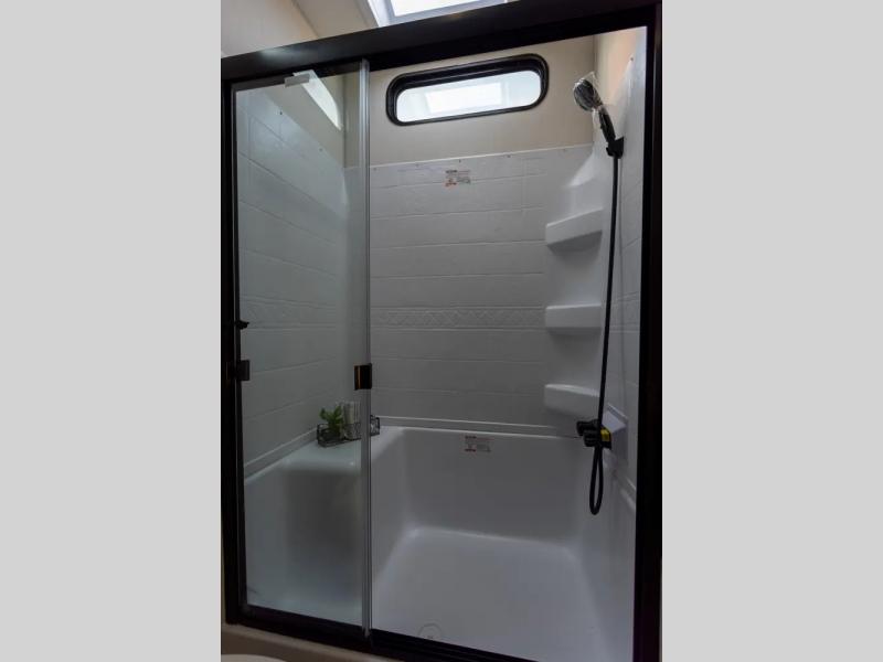 Enjoy comforts of home wherever you decide to roam in a Timberwolf destination trailer by Forest River. The seamless roofing membrane with heat reflectivity and power gear frame technology provide a durable foundation to your RV. You will also appreciate the exclusive solar thermo controlled reflective tinted safety glass windows, tire pressure monitors, and an on-demand tankless water heater to make extended stays easier than ever. Inside, the night shades will provide your crew with privacy, while the LED lights illuminate your space. There are also seamless countertops, along with a premium bedding ensemble and comforter, USB charging stations, a supersized central A/C unit, and many more comforts!