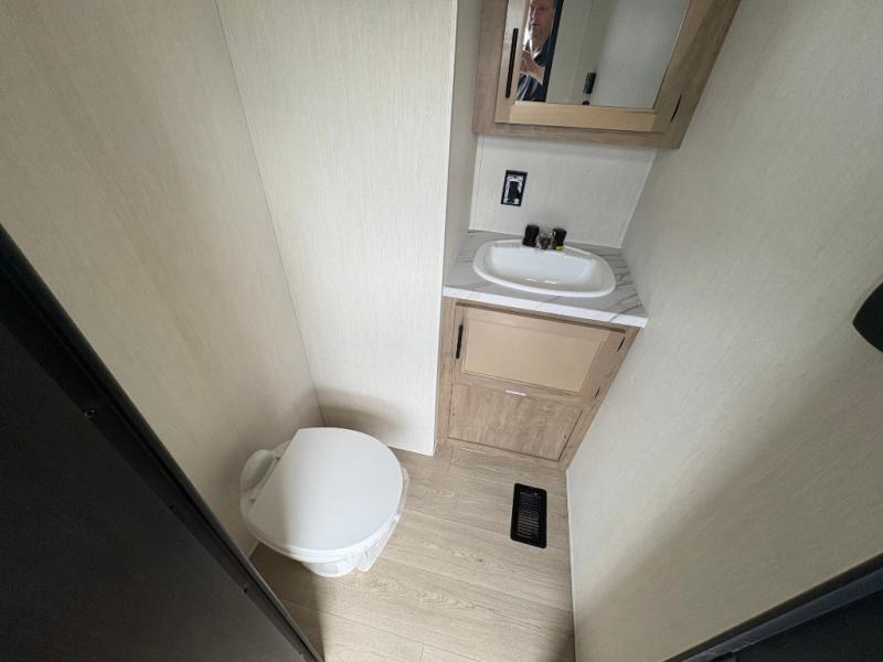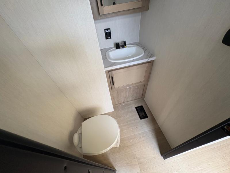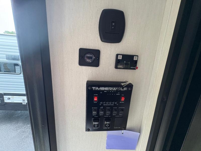 Enjoy comforts of home wherever you decide to roam in a Timberwolf destination trailer by Forest River. The seamless roofing membrane with heat reflectivity and power gear frame technology provide a durable foundation to your RV. You will also appreciate the exclusive solar thermo controlled reflective tinted safety glass windows, tire pressure monitors, and an on-demand tankless water heater to make extended stays easier than ever. Inside, the night shades will provide your crew with privacy, while the LED lights illuminate your space. There are also seamless countertops, along with a premium bedding ensemble and comforter, USB charging stations, a supersized central A/C unit, and many more comforts!
