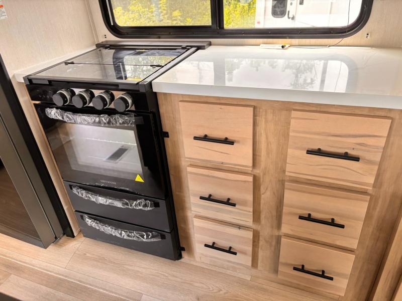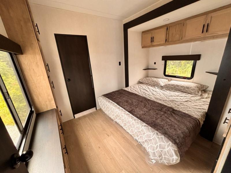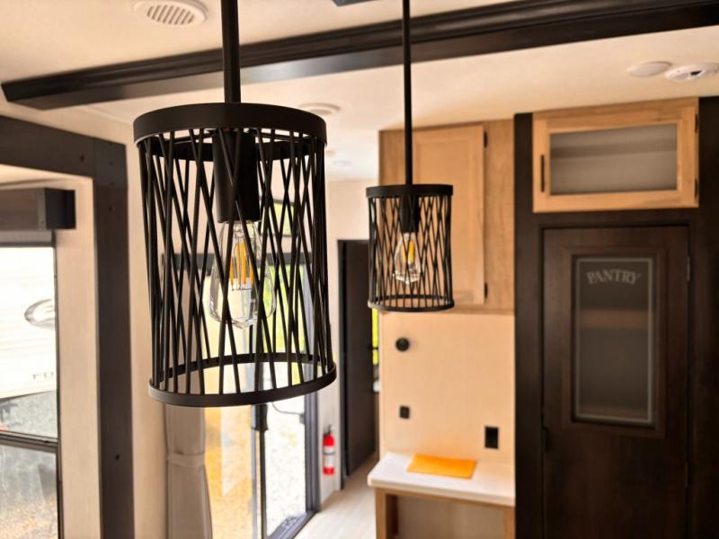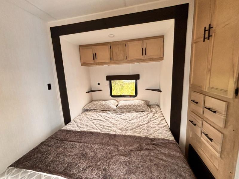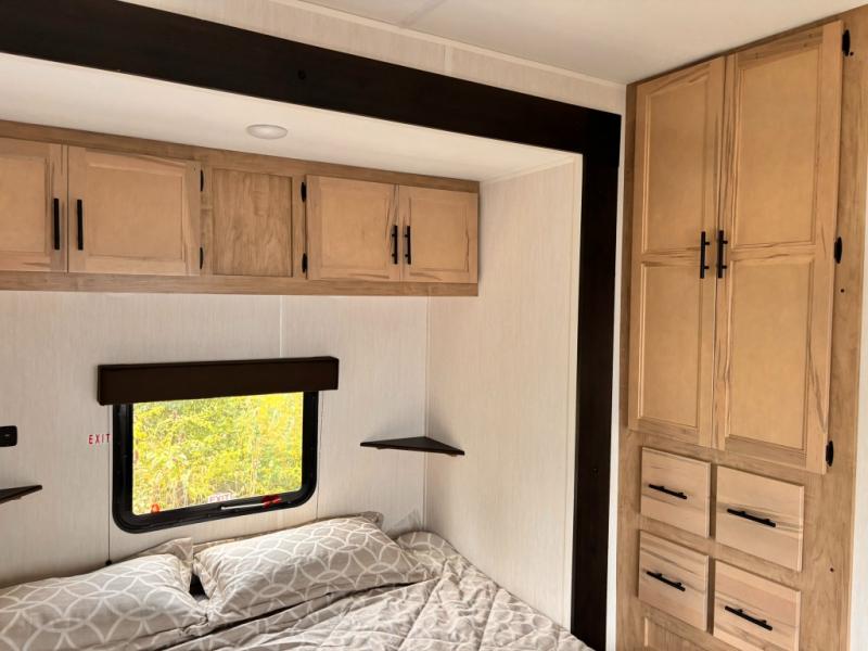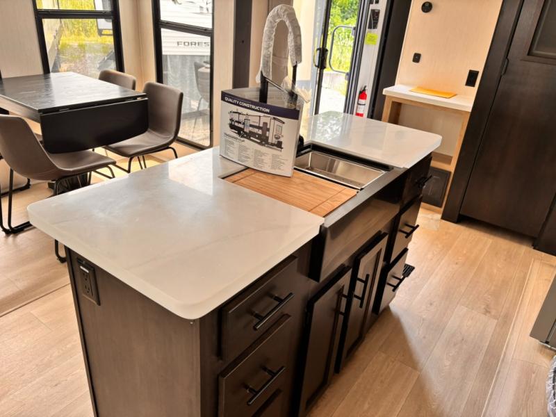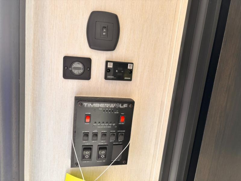 Enjoy comforts of home wherever you decide to roam in a Timberwolf destination trailer by Forest River. The seamless roofing membrane with heat reflectivity and power gear frame technology provide a durable foundation to your RV. You will also appreciate the exclusive solar thermo controlled reflective tinted safety glass windows, tire pressure monitors, and an on-demand tankless water heater to make extended stays easier than ever. Inside, the night shades will provide your crew with privacy, while the LED lights illuminate your space. There are also seamless countertops, along with a premium bedding ensemble and comforter, USB charging stations, a supersized central A/C unit, and many more comforts!