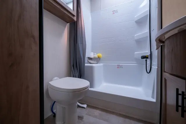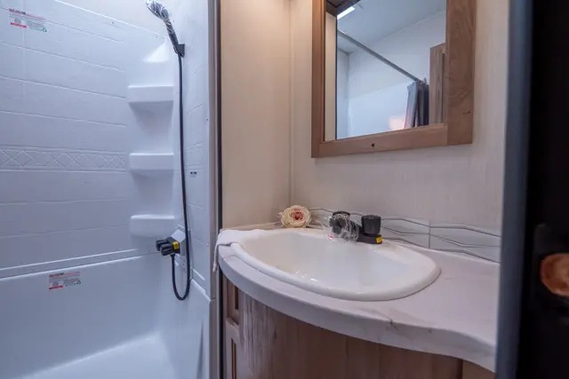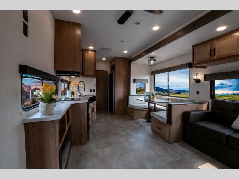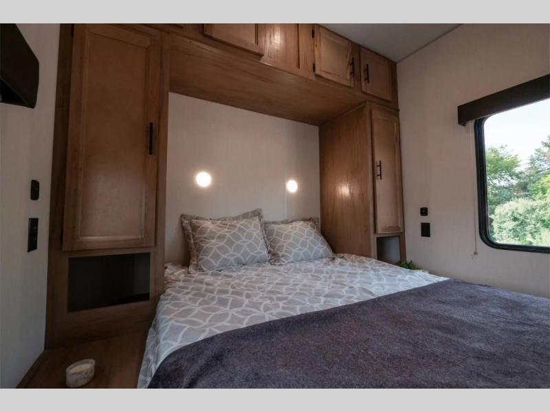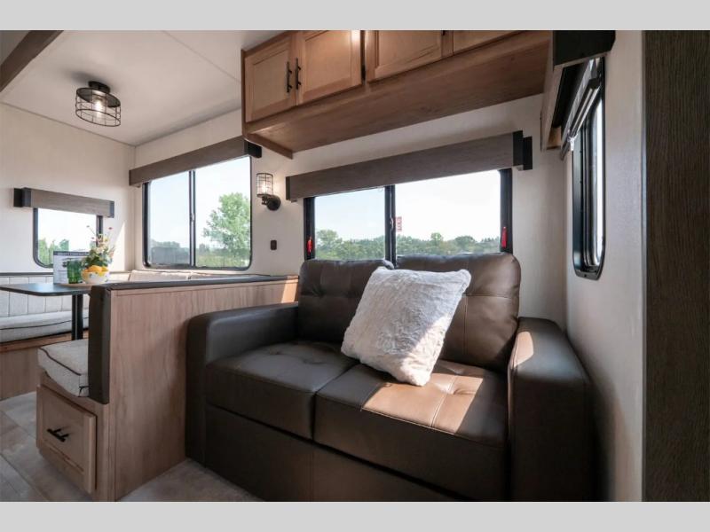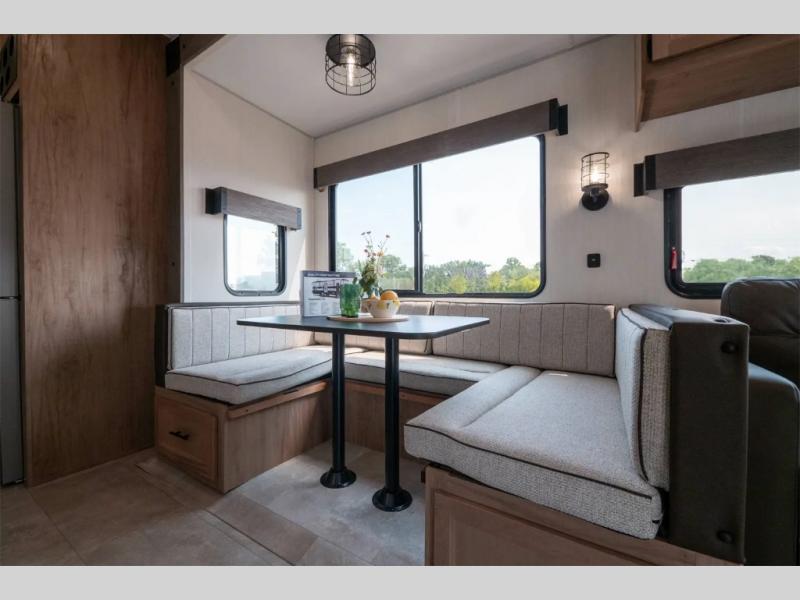 Enjoy comforts of home wherever you decide to roam in a Timberwolf destination trailer by Forest River. The seamless roofing membrane with heat reflectivity and power gear frame technology provide a durable foundation to your RV. You will also appreciate the exclusive solar thermo controlled reflective tinted safety glass windows, tire pressure monitors, and an on-demand tankless water heater to make extended stays easier than ever. Inside, the night shades will provide your crew with privacy, while the LED lights illuminate your space. There are also seamless countertops, along with a premium bedding ensemble and comforter, USB charging stations, a supersized central A/C unit, and many more comforts!