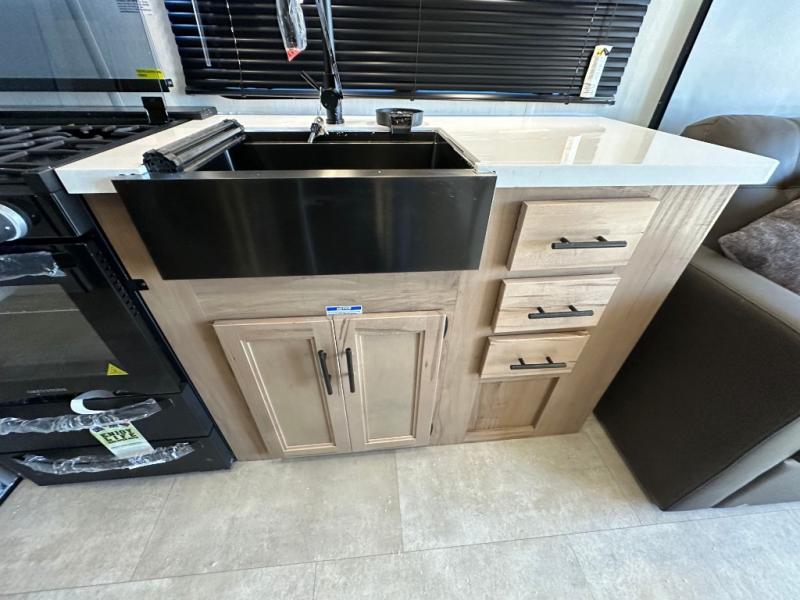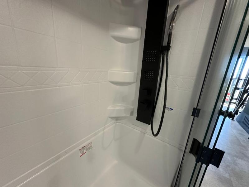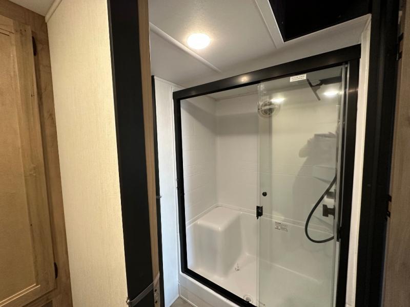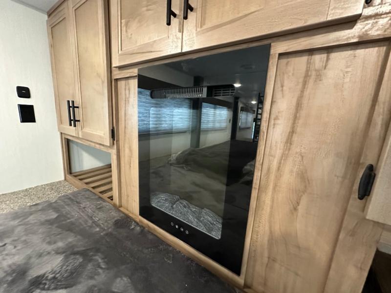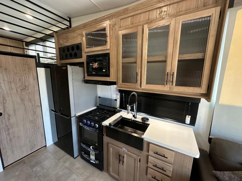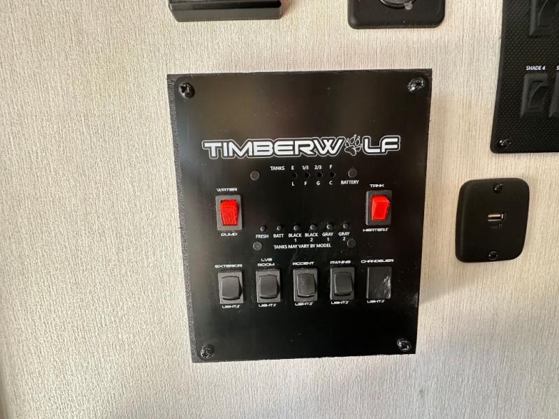 Enjoy comforts of home wherever you decide to roam in a Cherokee Timberwolf Black Label destination trailer by Forest River. The seamless roofing membrane with heat reflectivity and power gear frame technology provide a durable foundation to your RV. You will also appreciate the exclusive solar thermo controlled reflective tinted safety glass windows, tire pressure monitors, and an on-demand tankless water heater to make extended stays easier than ever. Inside, the night shades will provide your crew with privacy, while the LED lights illuminate your space. There are also seamless countertops, along with a premium bedding ensemble and comforter, USB charging stations, and a supersized central A/C unit. The Black Label Package features hung fiberglass gel coat sided walls, Thermo-Foil Arctic insulation, and a frameless window package. There are also upgraded reading lights, designer cushion fabric, and upgraded solid surface countertops to have you feeling right at home!