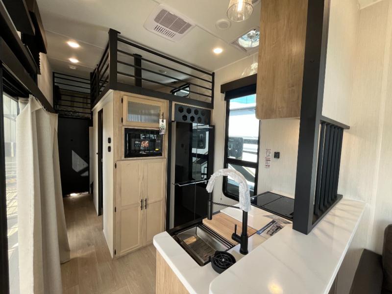 Nestled in a tranquil setting, this destination trailer offers the perfect blend of comfort and relaxation. The heart of the trailer is the main space, where you can chill on the L-shaped sofa or prep meals in the kitchen. The full bathroom is a refreshing oasis, and the kitchen is equipped with a fridge, microwave, pantry, and sink—everything you need to keep you fueled and happy. Furthermore, the rear king bed is a luxurious retreat, perfect for unwinding after a big day. Finally, up in the loft, the queen bed is a cozy nest with a unique view, making this RV great for reading, relaxing, or catching some Z's.