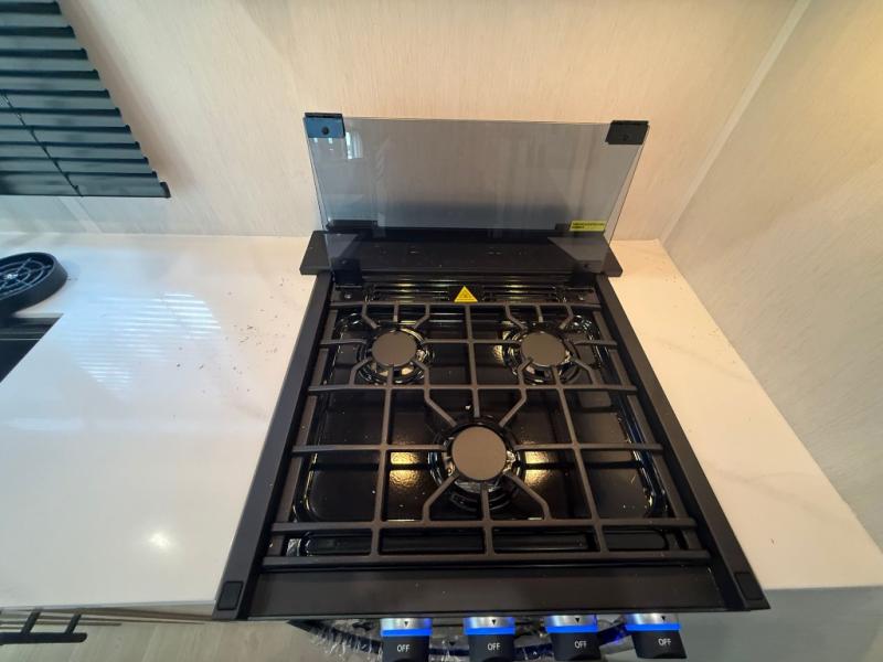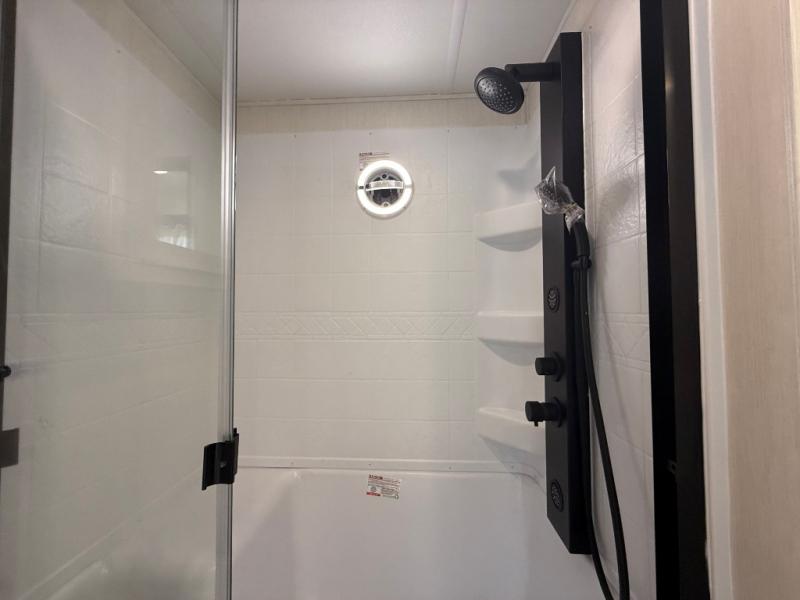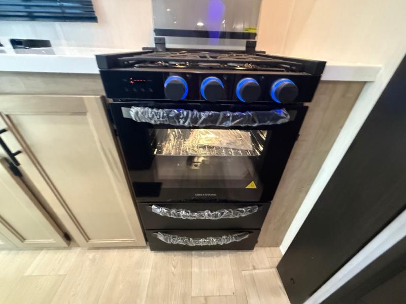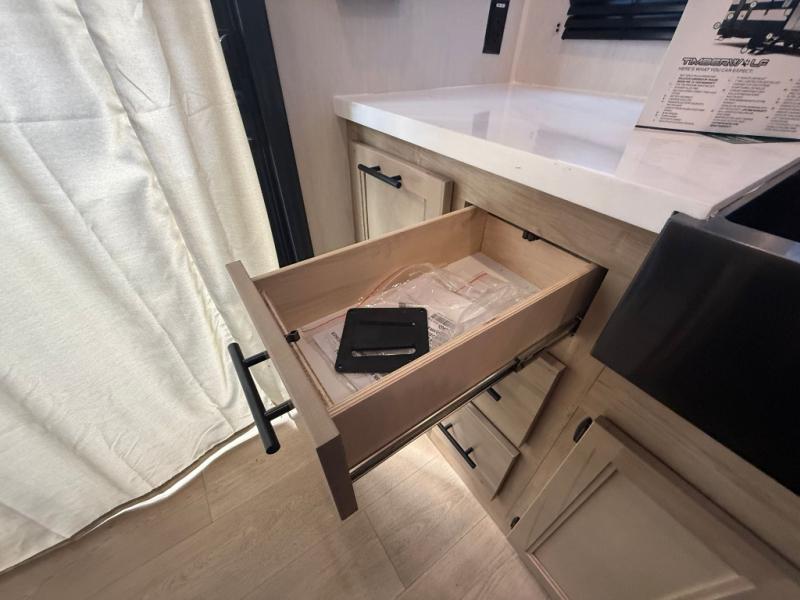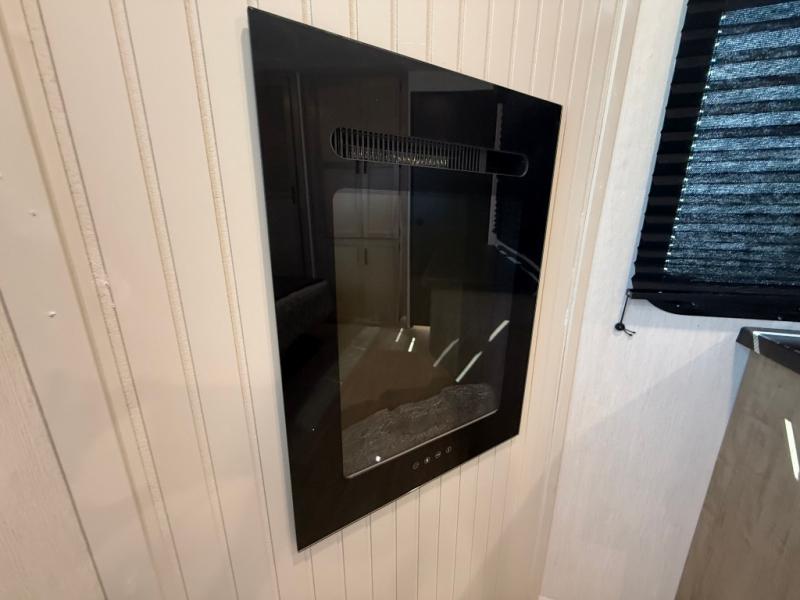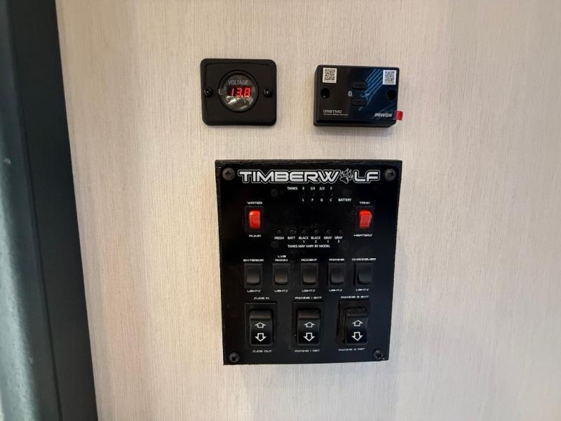 Enjoy comforts of home wherever you decide to roam in a Cherokee Timberwolf Black Label destination trailer by Forest River. The seamless roofing membrane with heat reflectivity provide a durable foundation to your RV. You will also appreciate the exclusive solar thermo controlled reflective tinted safety glass windows, and an on-demand tankless water heater to make extended stays easier than ever. Inside, the night shades will provide your crew with privacy, while the fireplace will create a cozy atmosphere. There are also seamless countertops, along with a premium bedding ensemble and comforter, USB charging stations, and a supersized central A/C unit. The Black Label Package features hung fiberglass gel coat sided walls, Thermo-Foil Arctic insulation, and a frameless window package. There are also upgraded reading lights, designer cushion fabric, and upgraded solid surface countertops to have you feeling right at home!