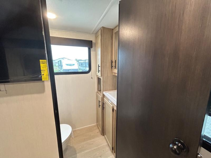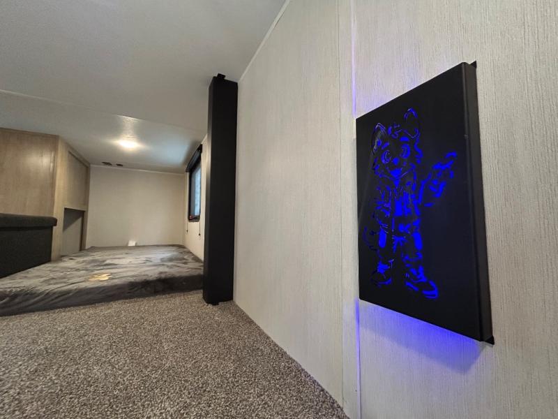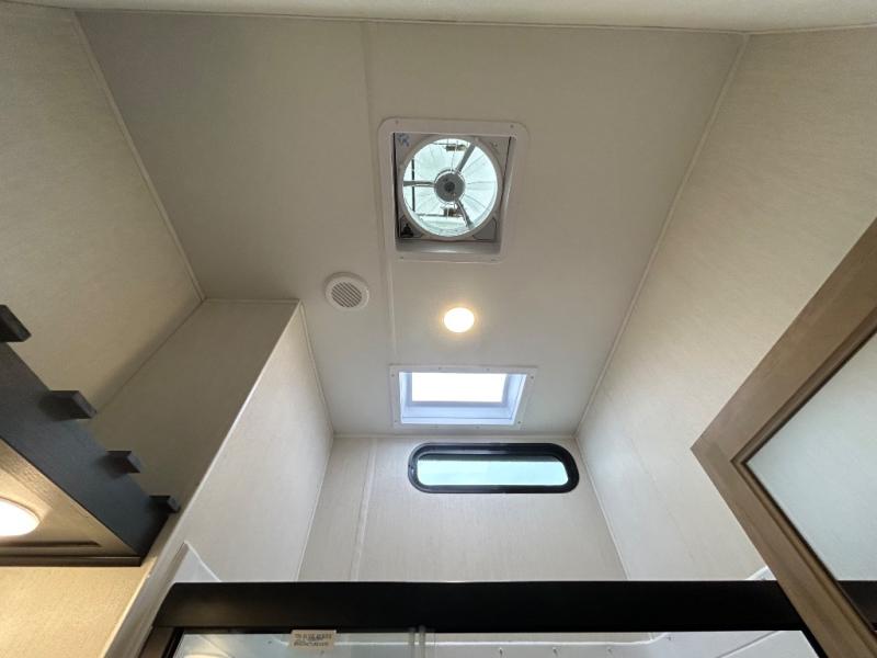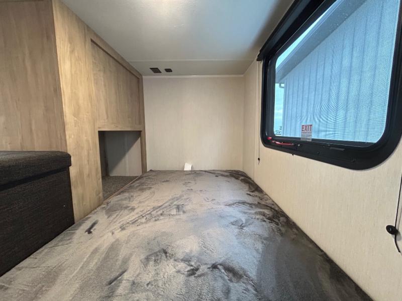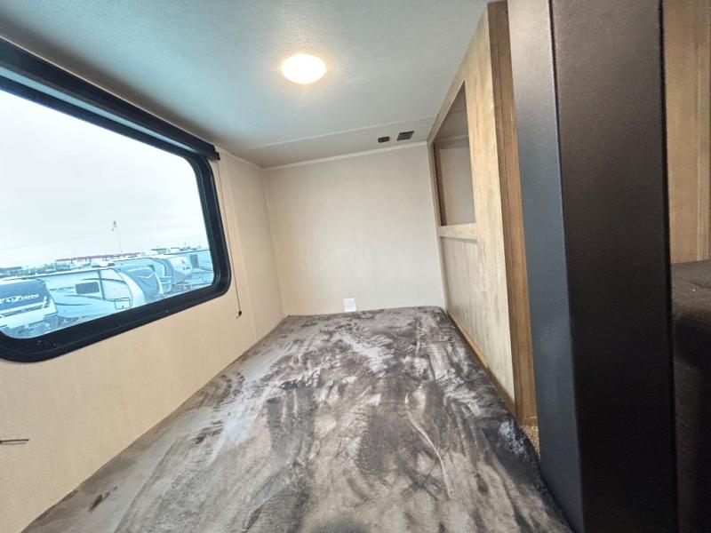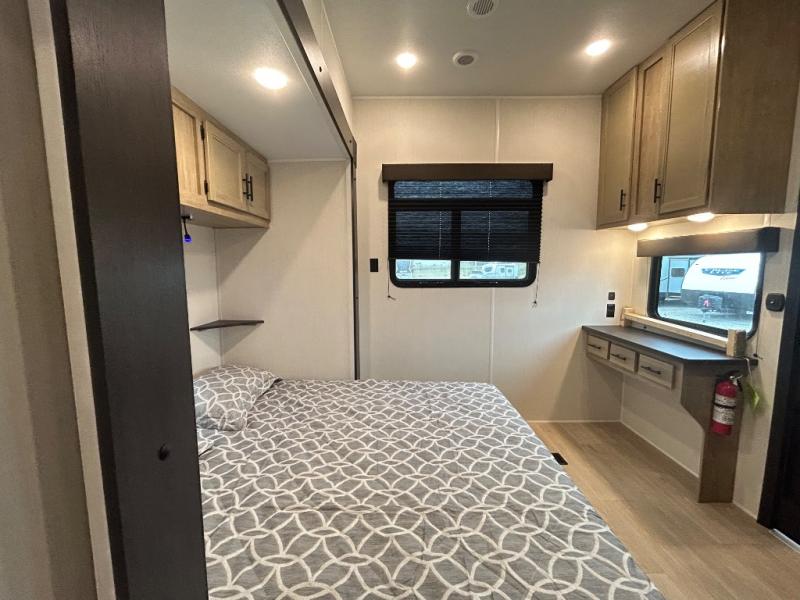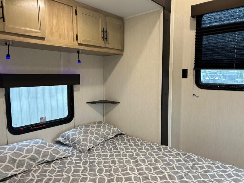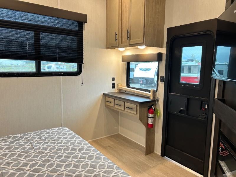 If you plan to camp with a larger group, this destination trailer will be perfect for you! There is a front private bedroom with a king bed slide out, a desk with a shoe rack underneath, plus an entertainment center with a fireplace to make it more cozy! Your guests can claim the rear den with a sofa slide out, plenty of storage, and their own full bath! There is even a loft above this room with two bunk mats and cabinets for storage. And the second full bath is up front right next to the bedroom for convenience. In the morning, everyone can meet in the combined kitchen and living area as the chef make breakfast in the full kitchen. There is a U-shaped dinette and hide-a-bed sofa within the large slide out here, plus an entertainment center with a fireplace and hidden walk-in pantry!