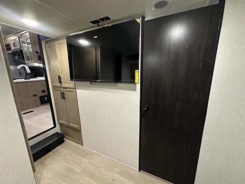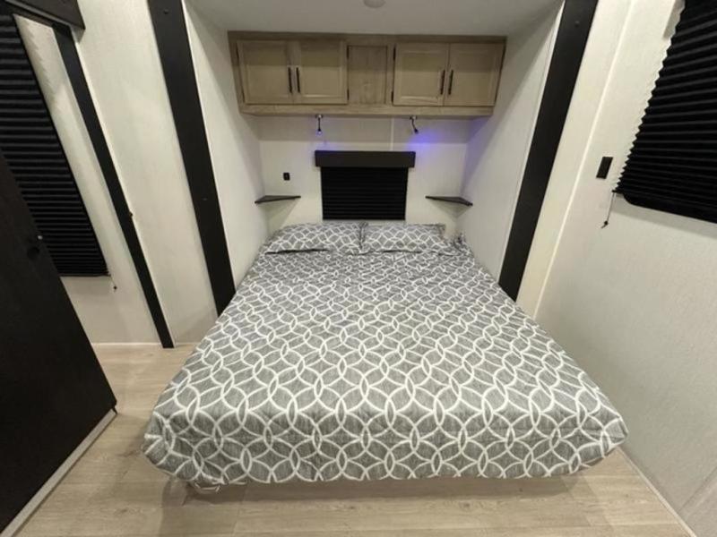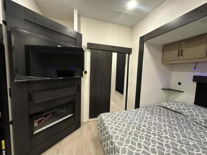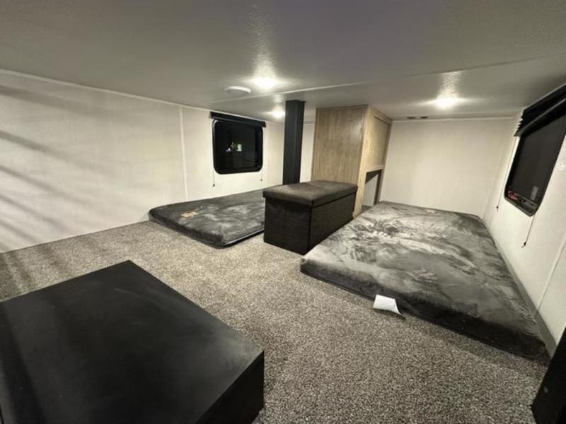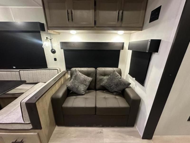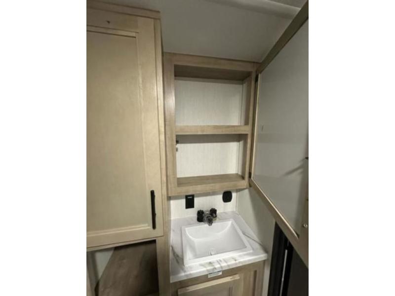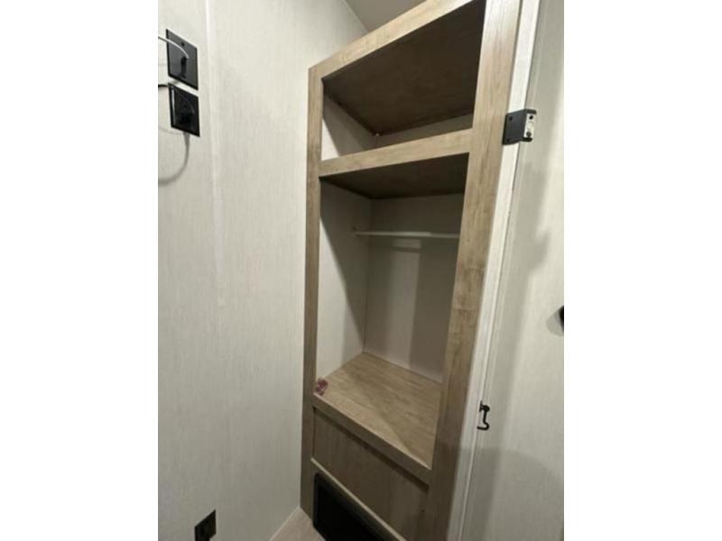 If you plan to camp with a larger group, this destination trailer will be perfect for you! There is a front private bedroom with a king bed slide out, a desk with a shoe rack underneath, plus an entertainment center with a fireplace to make it more cozy! Your guests can claim the rear den with a sofa slide out, plenty of storage, and their own full bath! There is even a loft above this room with two bunk mats and cabinets for storage. And the second full bath is up front right next to the bedroom for convenience. In the morning, everyone can meet in the combined kitchen and living area as the chef make breakfast in the full kitchen. There is a U-shaped dinette and hide-a-bed sofa within the large slide out here, plus an entertainment center with a fireplace and hidden walk-in pantry!