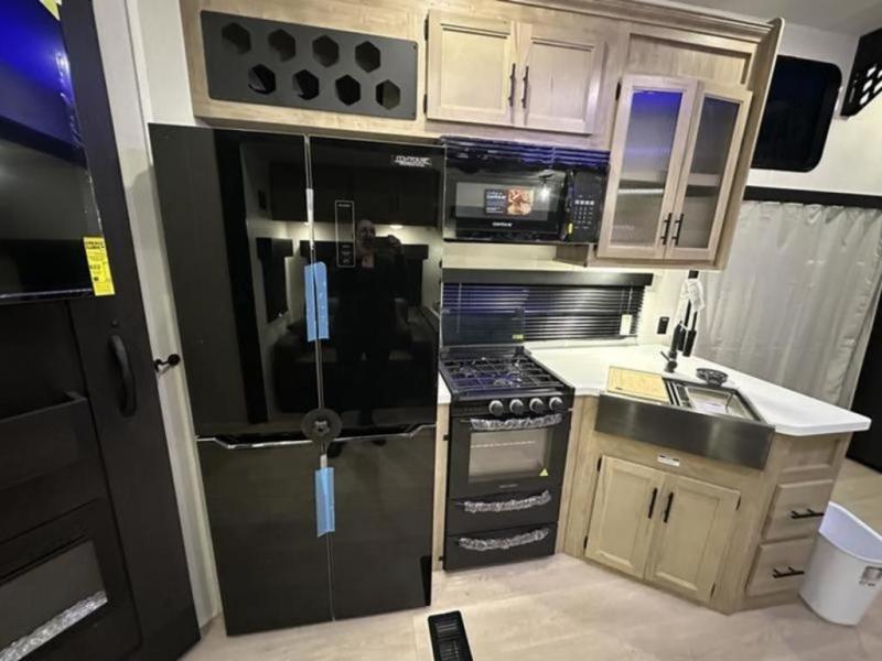 Enjoy comforts of home wherever you decide to roam in a Cherokee Timberwolf Black Label destination trailer by Forest River. Each trailer is constructed with Tufflex PVC seamless roof membrane which is weather-tight and heat-reflective, giving you peace of mind in any climate. The monitor panel keeps you on top of tank levels, battery status, and more—all at a glance. Plus, USB-C charging stations mean you can power up and stay connected. You will love the interior with its cozy sleeping arrangements, full bath and kitchen amenities, plus plenty of storage spaces for food, clothing, gear and more!
