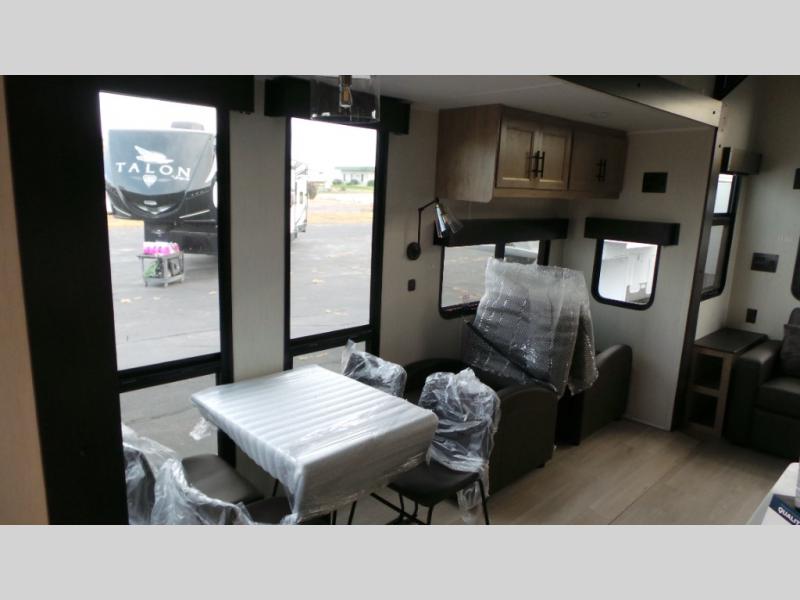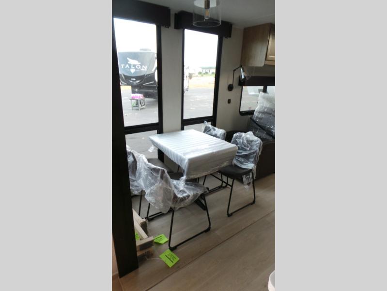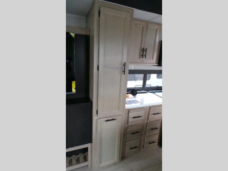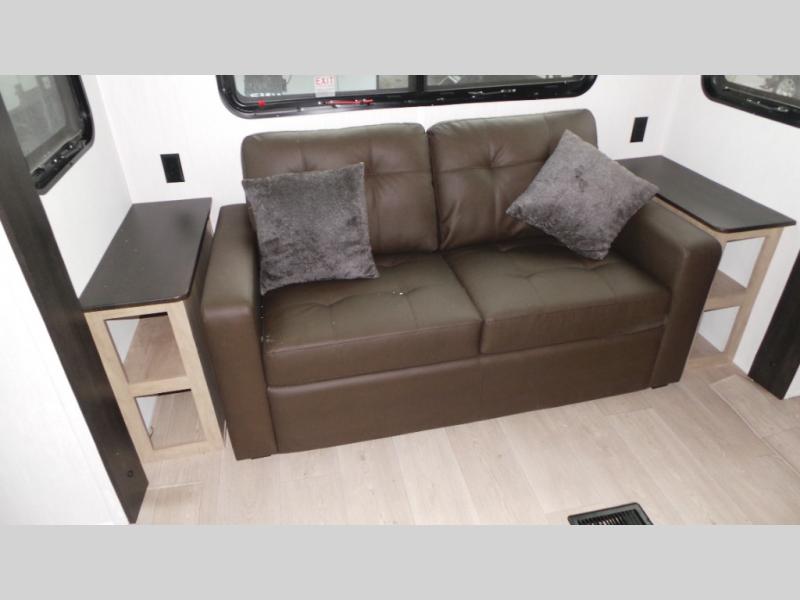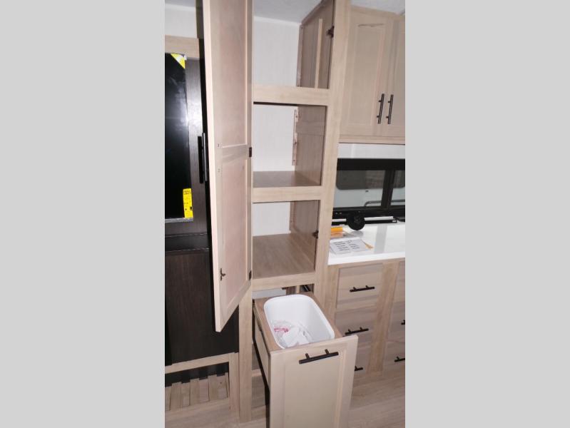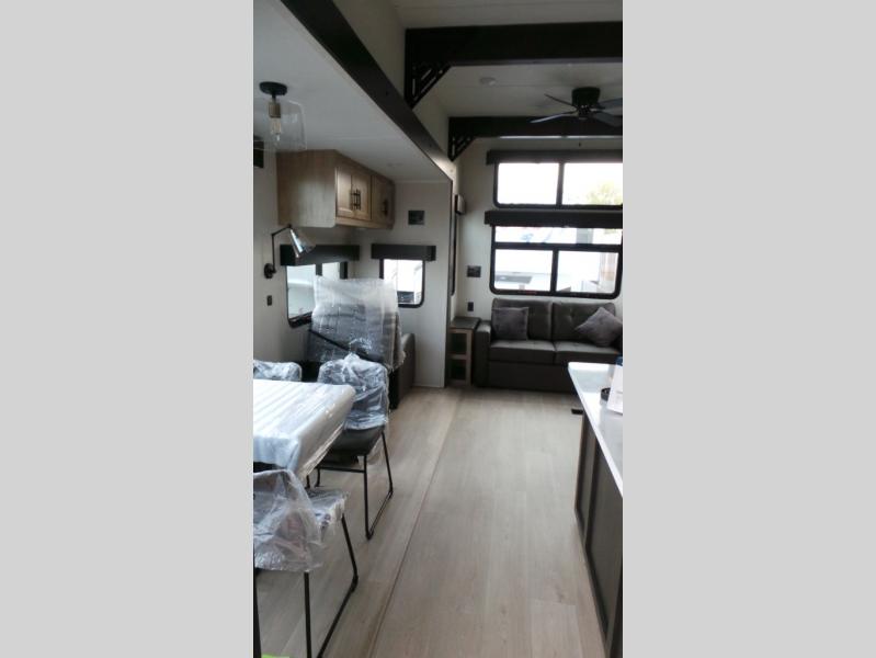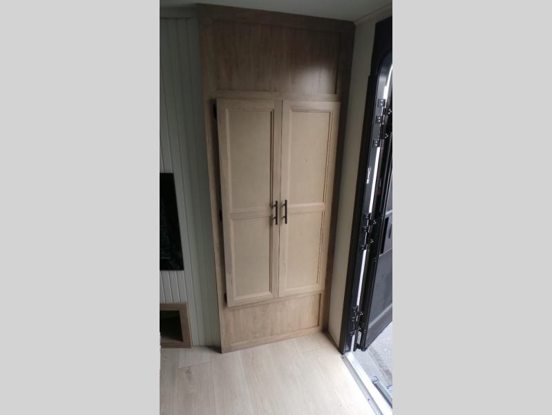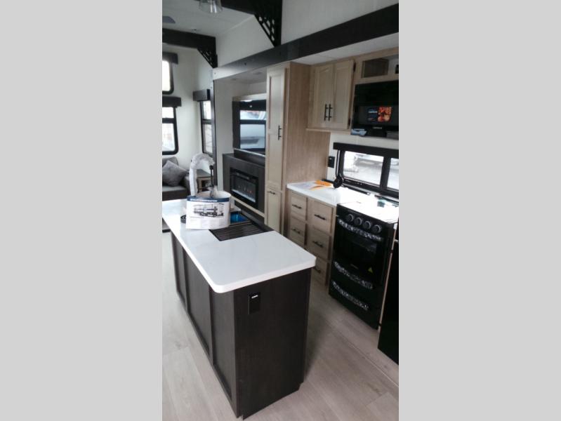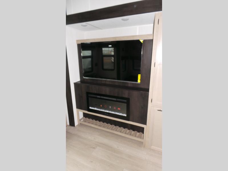 The 39DLBL features a double loft system for both additional sleeping and massive storage. The bedroom slide out is sized to accommodate an optional king bed. The two opposing rear slides open up the living room and kitchen so there is plenty of space for everyone to be comfortable. This kitchen has a huge residential French door refrigerator with two lower freezer drawers along with two full sized closets and an island suitable when preparing for the largest of gatherings.