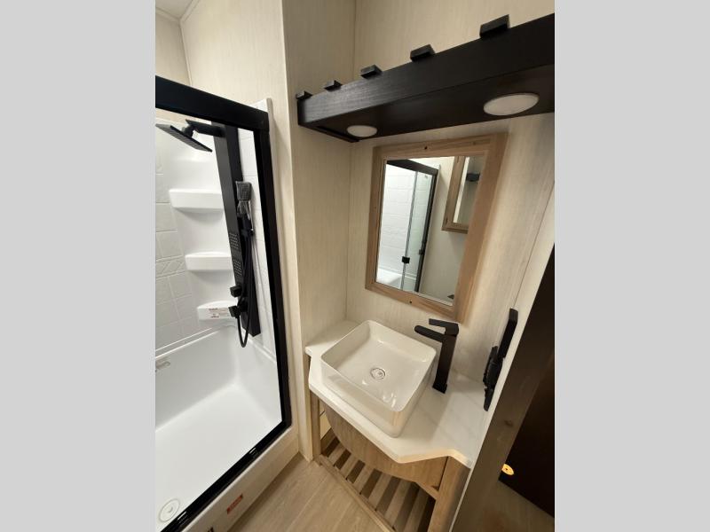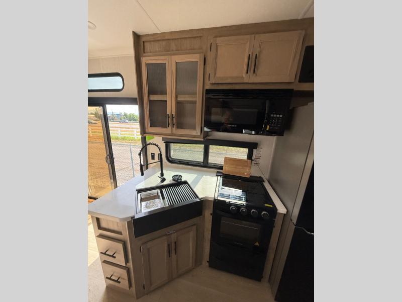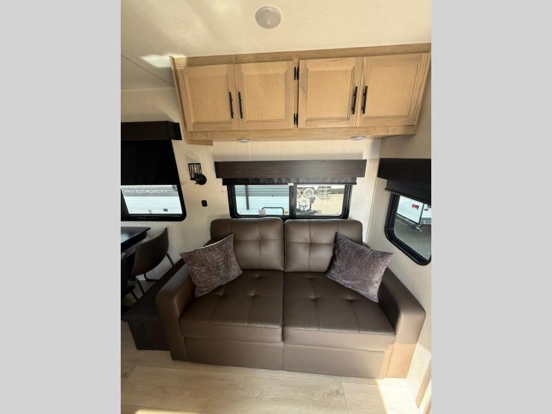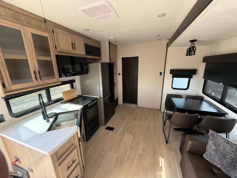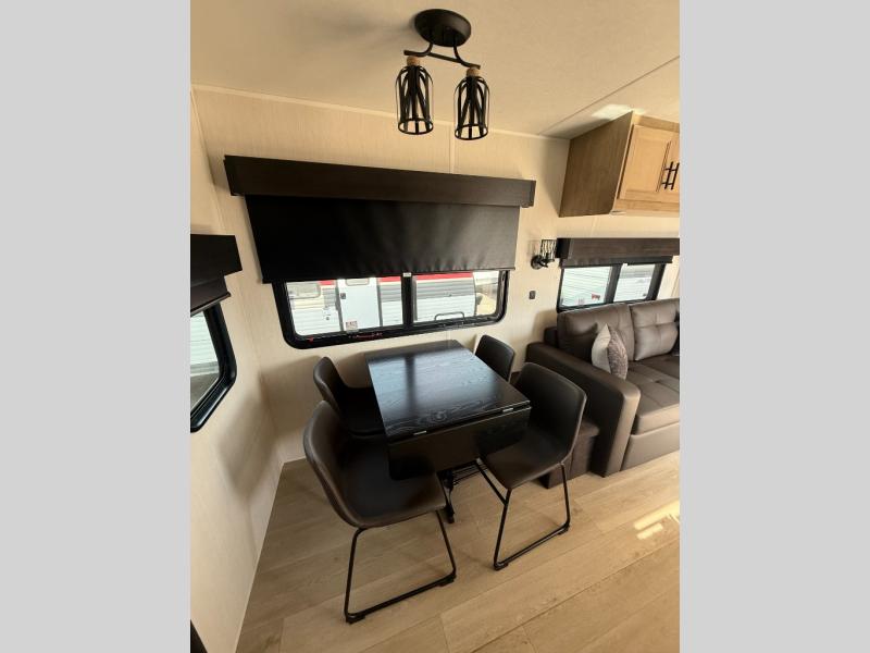 Enjoy comforts of home wherever you decide to roam in a Cherokee Timberwolf Black Label destination trailer by Forest River. The seamless roofing membrane with heat reflectivity provide a durable foundation to your RV. You will also appreciate the exclusive solar thermo controlled reflective tinted safety glass windows, and an on-demand tankless water heater to make extended stays easier than ever. Inside, the night shades will provide your crew with privacy, while the fireplace will create a cozy atmosphere. There are also seamless countertops, along with a premium bedding ensemble and comforter, USB charging stations, and a supersized central A/C unit. The Black Label Package features hung fiberglass gel coat sided walls, Thermo-Foil Arctic insulation, and a frameless window package. There are also upgraded reading lights, designer cushion fabric, and upgraded solid surface countertops to have you feeling right at home!