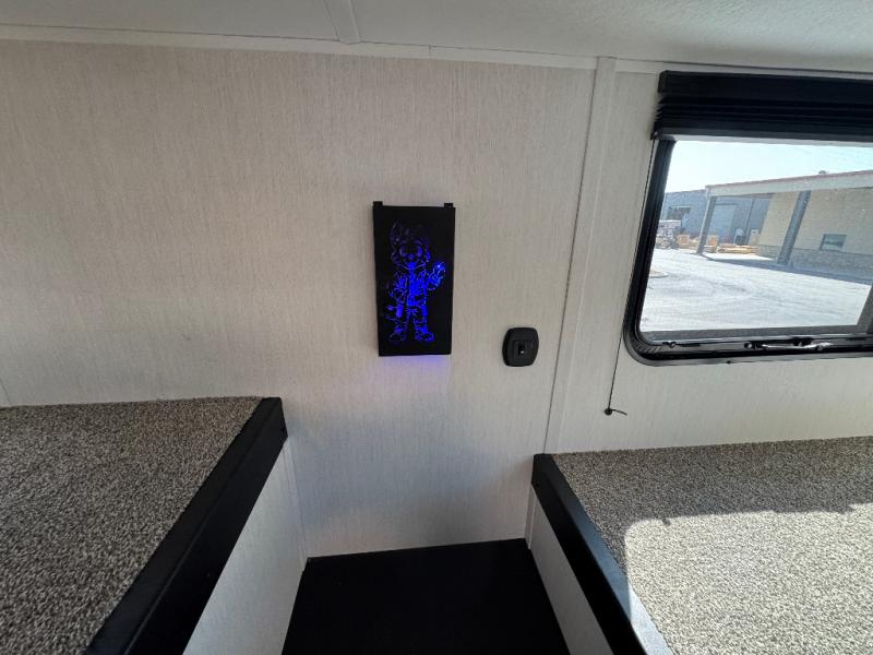 Enjoy comforts of home wherever you decide to roam in a Cherokee Timberwolf Black Label destination trailer by Forest River. The seamless roofing membrane with heat reflectivity provide a durable foundation to your RV. You will also appreciate the exclusive solar thermo controlled reflective tinted safety glass windows, and an on-demand tankless water heater to make extended stays easier than ever. Inside, the night shades will provide your crew with privacy, while the fireplace will create a cozy atmosphere. There are also seamless countertops, along with a premium bedding ensemble and comforter, USB charging stations, and a supersized central A/C unit. The Black Label Package features hung fiberglass gel coat sided walls, Thermo-Foil Arctic insulation, and a frameless window package. There are also upgraded reading lights, designer cushion fabric, and upgraded solid surface countertops to have you feeling right at home!