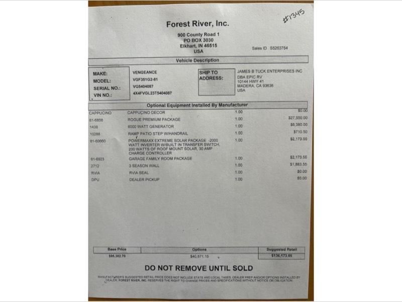 New 2026 Forest River RV Cherokee Vengeance 351G2 Toy Hauler Fifth Wheel