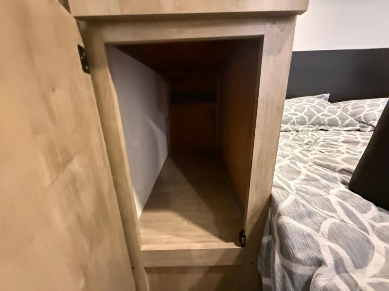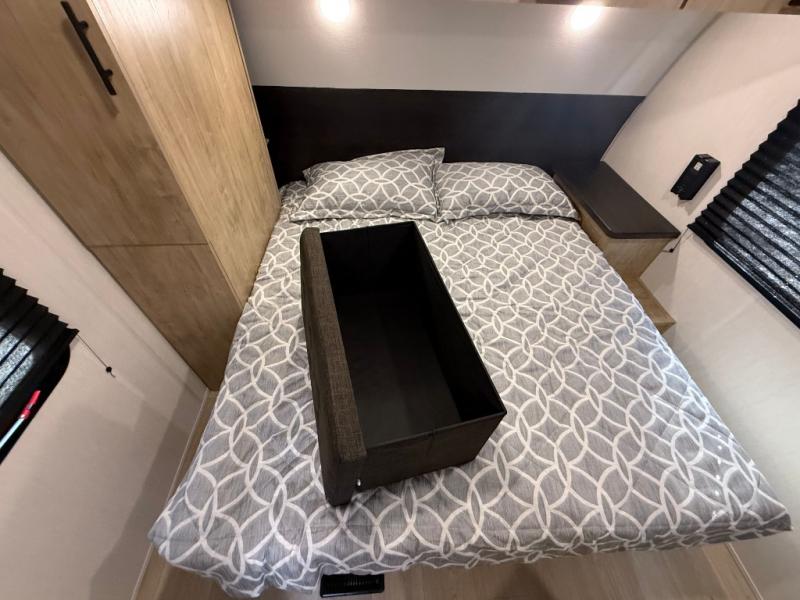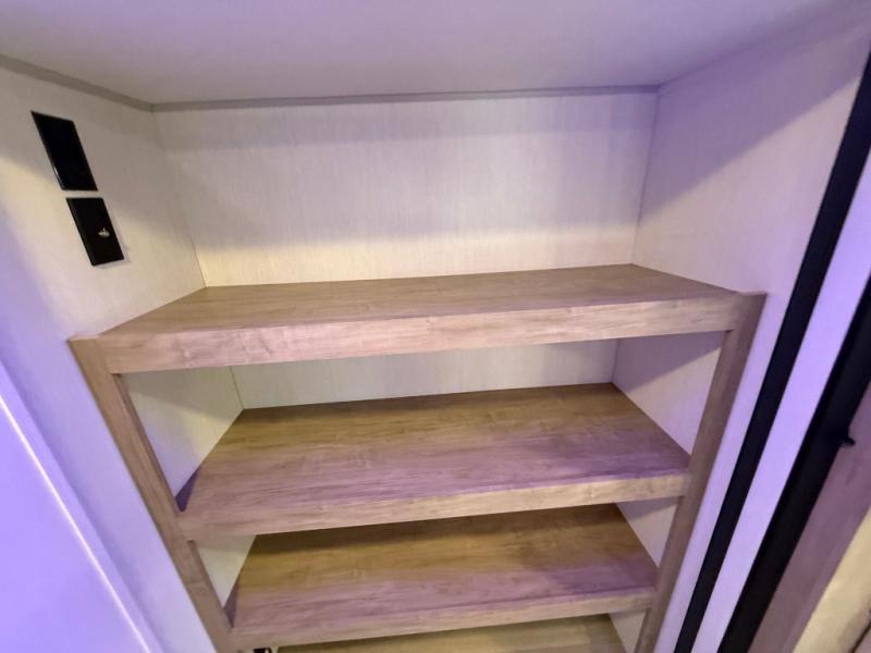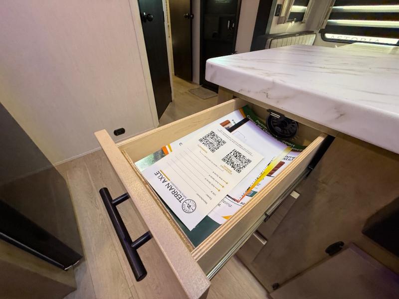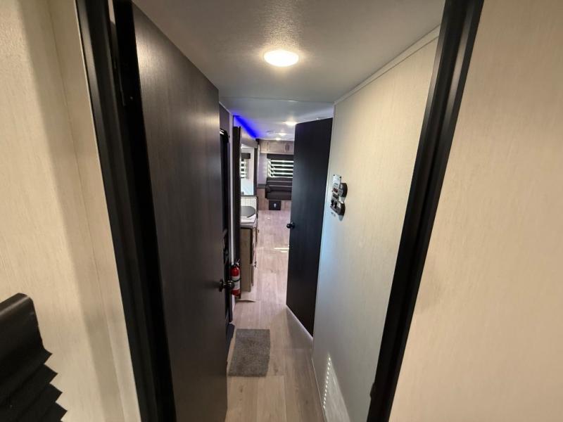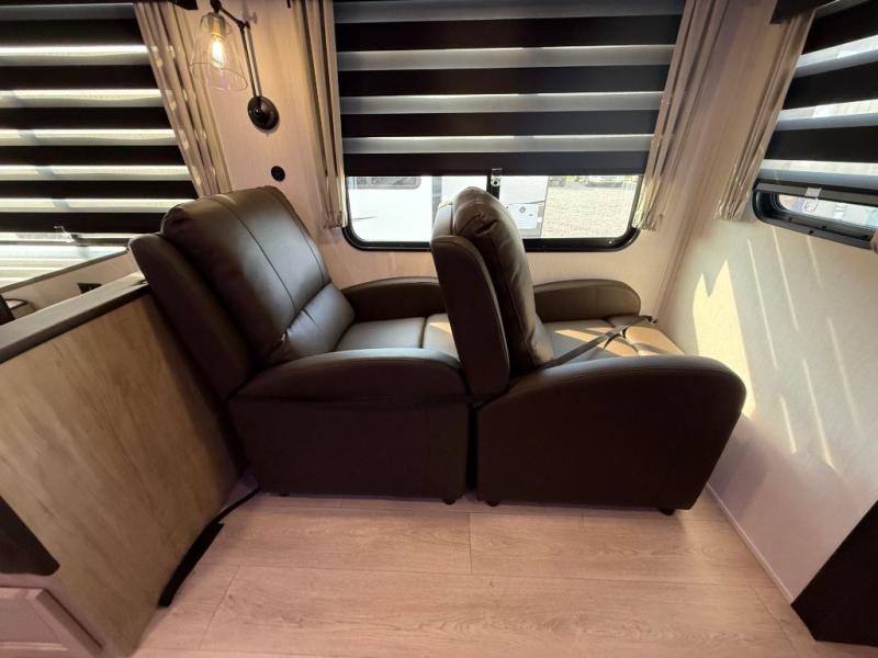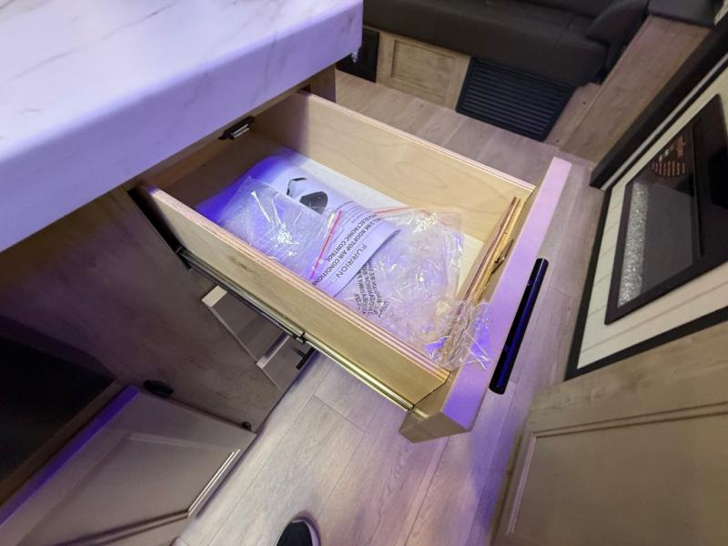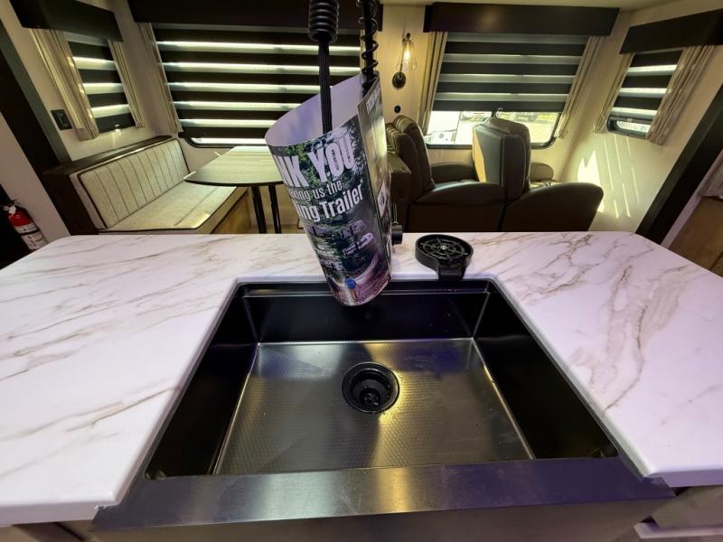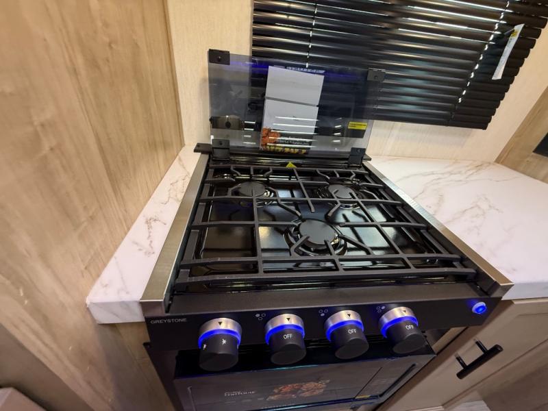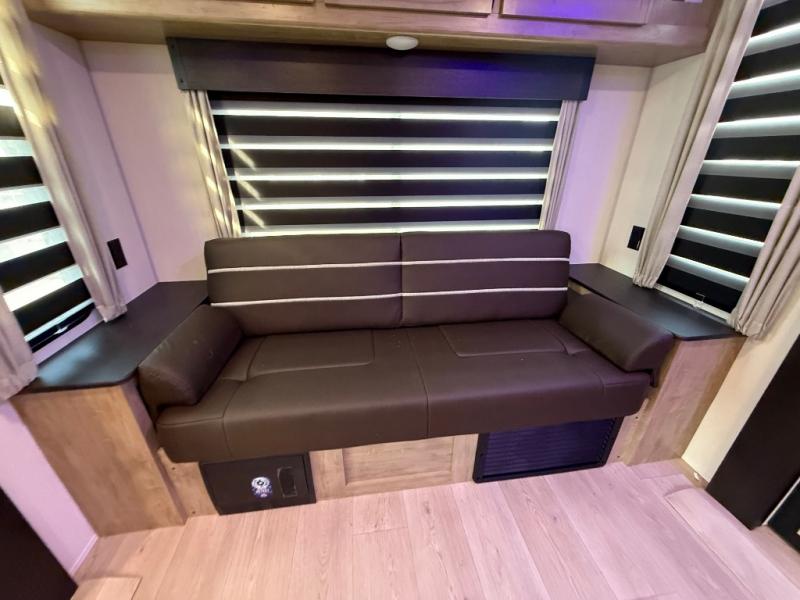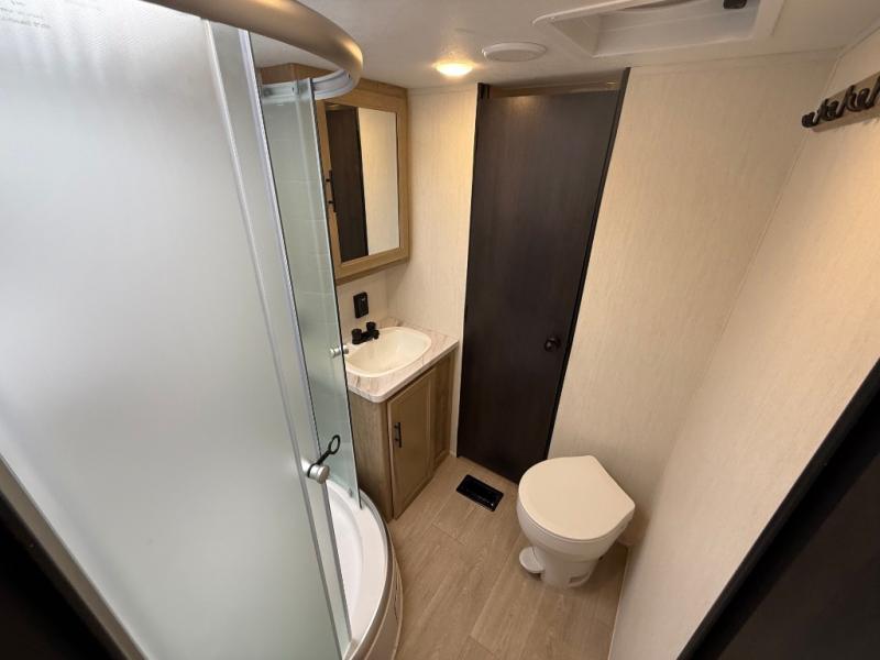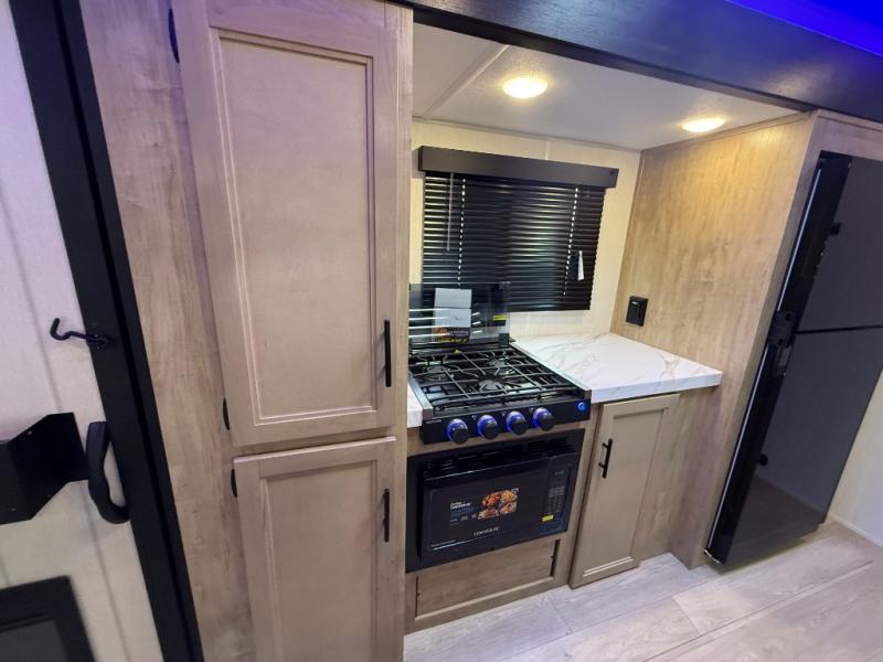 You'll love every minute spent in this double slide out travel trailer. You can relax on the rear sofa or dual lounge chairs, play a game at the booth dinette, and enjoy the glow of the fireplace. The chef of your group will appreciate the kitchen island, air fryer, plus refrigerator and pantry for food storage. A dual entry bath will create a front master bedroom, complete with an RV king bed and a bedside wardrobe to keep your space tidy.