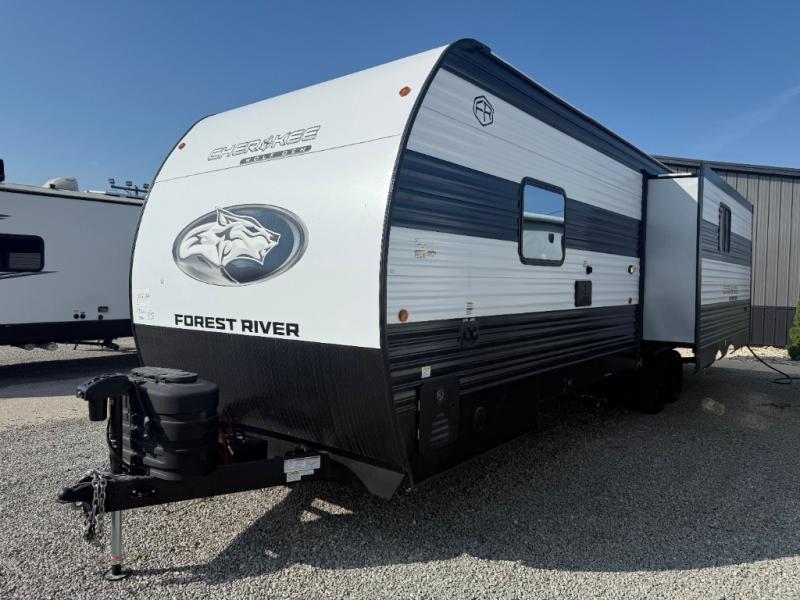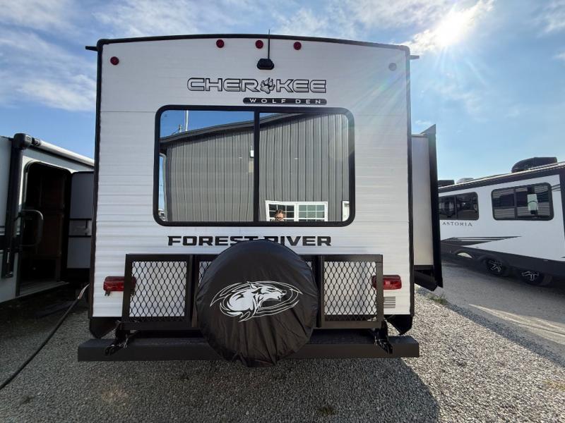 If the open road is calling your name, then answer it with one of these Forest River Cherokee Wolf Den travel trailers! You'll find better comfort, style and value in these trailers, giving you more freedom to enjoy the camping lifestyle. Like with all Forest River products, the Wolf Den features durable construction materials and convenient amenities, such as outdoor storage and battery disconnect. With at least one slide in each model, you'll enjoy open living spaces, along with full bath and kitchen amenities, and comfortable sleeping arrangements.