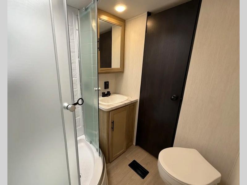 If the open road is calling your name, then answer it with one of these Forest River Cherokee Wolf Den travel trailers! They are built with an aerodynamic smooth radius front profile, a one-piece walkable decked roof, and a Cherokee exclusive stable step with oversized landing. There are also four stabilizer jacks outside, along with ladder prep, a premium wheel package and exclusive solar thermo controlled reflective tinted safety glass windows. The seamless countertops inside will be easy to keep clean, and the premium bedding will have you feeling right at home. There are also USB-C charging stations to keep your electronics charged and ready to go, plus many more stand-out features!