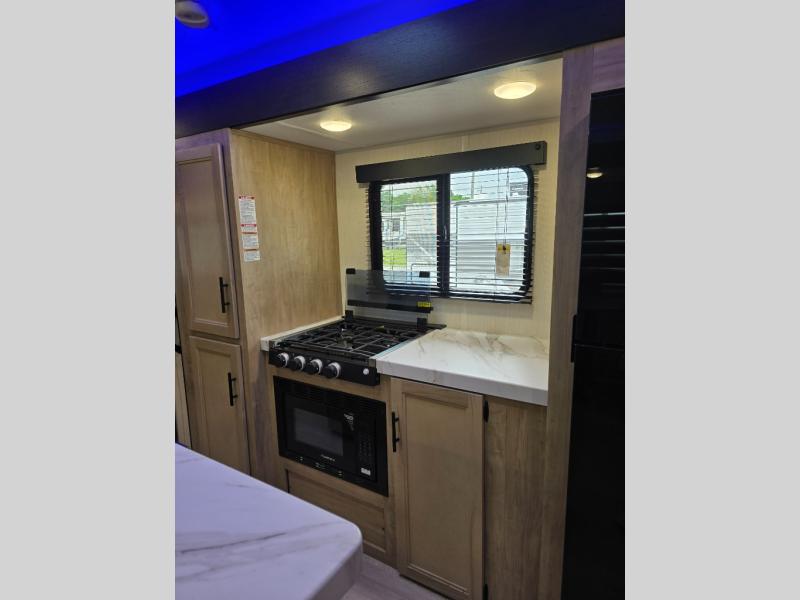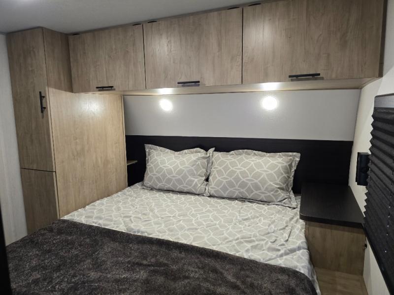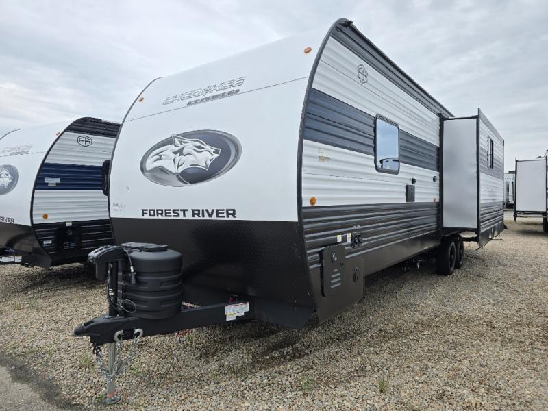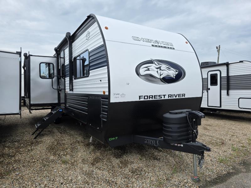 If the open road is calling your name, then answer it with one of these Forest River Cherokee Wolf Den travel trailers! They are built with an aerodynamic smooth radius front profile, a one-piece walkable decked roof, and a Cherokee exclusive stable step with oversized landing. There are also four stabilizer jacks outside, along with ladder prep, a premium wheel package and exclusive solar thermo controlled reflective tinted safety glass windows. The seamless countertops inside will be easy to keep clean, and the premium bedding will have you feeling right at home. There are also USB-C charging stations to keep your electronics charged and ready to go, plus many more stand-out features!
