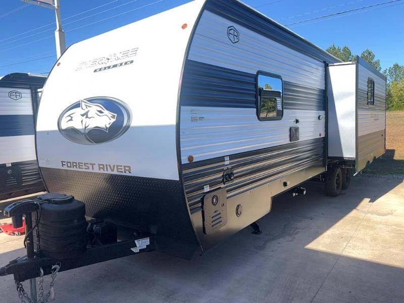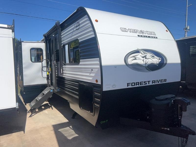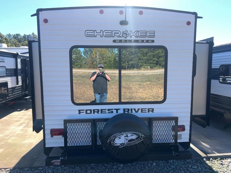 If the open road is calling your name, then answer it with one of these Forest River Cherokee Wolf Den travel trailers! You'll find better comfort, style and value in these trailers, giving you more freedom to enjoy the camping lifestyle. Like with all Forest River products, the Wolf Den features durable construction materials and convenient amenities, such as outdoor storage and battery disconnect. With at least one slide in each model, you'll enjoy open living spaces, along with full bath and kitchen amenities, and comfortable sleeping arrangements.