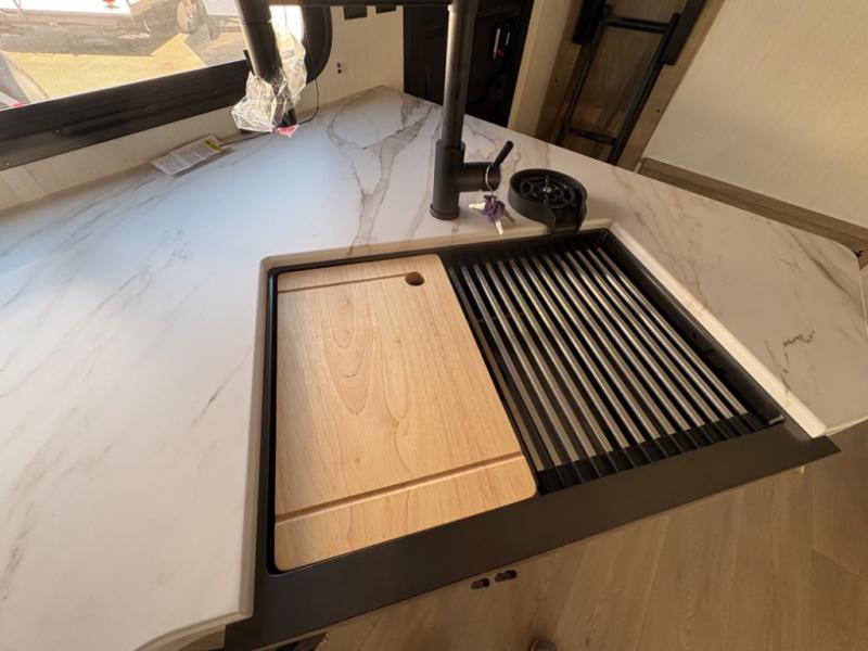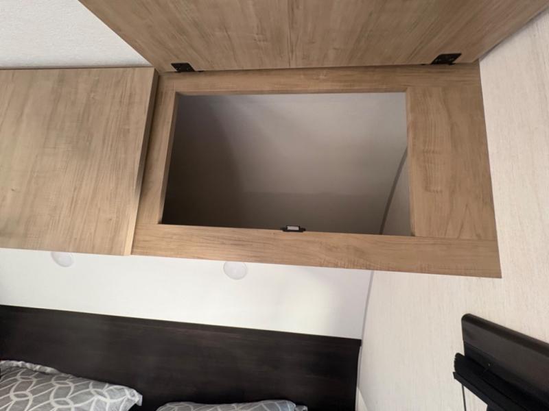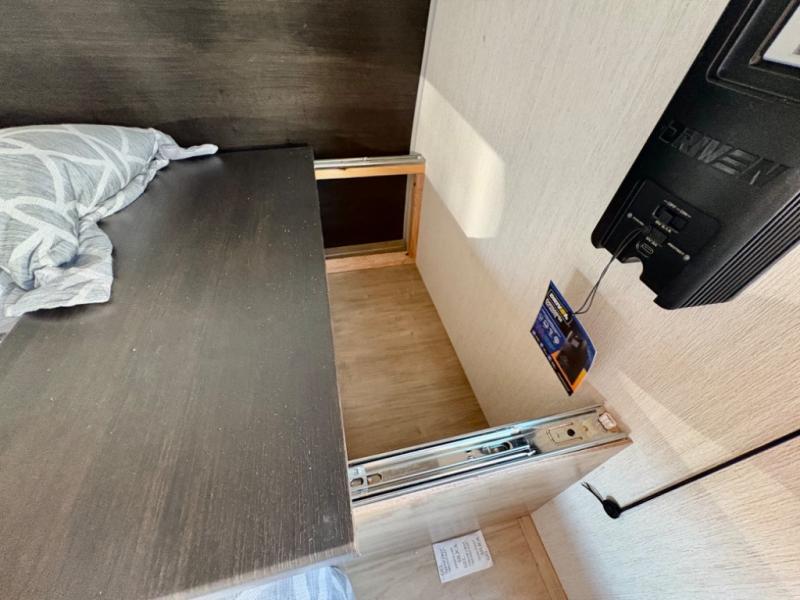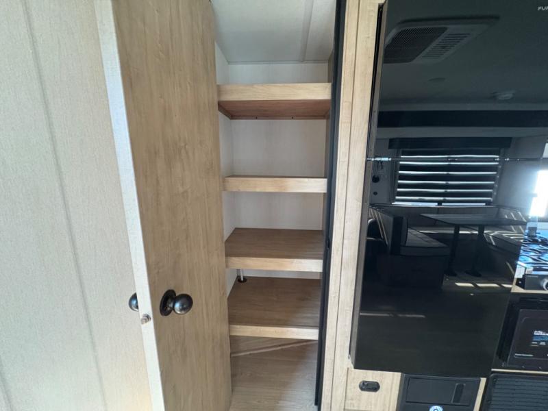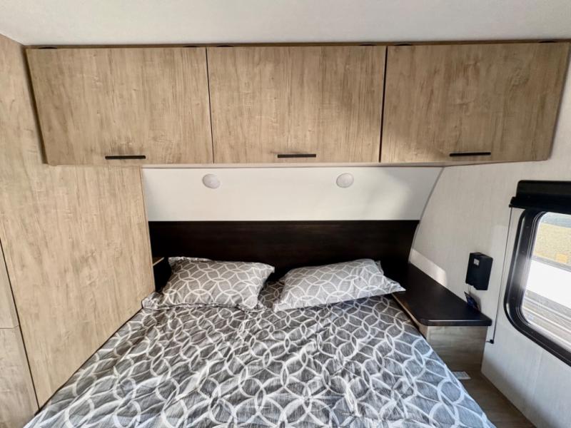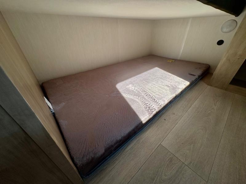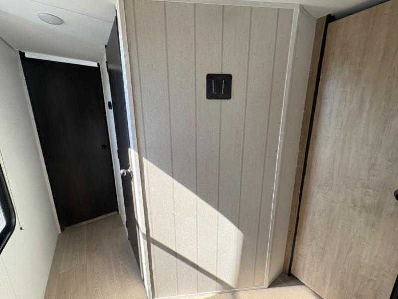 Escape your ordinary life with this innovative travel trailer! It features 64" top bunk bed above a 36" bottom bunk with wardrobes on either side of them, plus there is a wall at the foot of the beds with a fireplace on the other side. You will have your own privacy with the front private bedroom that has a walk-around RV king bed with a bedside wardrobe and an entrance into the dual entry bathroom which has a neo-angled shower to freshen up in each morning plus one of the dual entry doors to the unit. The sofa and U-shaped dinette can also transform into extra sleeping spaces when you aren't using them to enjoy a meal or relax. The outdoor bar and grill will let you grill up your best burger recipe, and you even have a rear storage rack and outside storage areas to store your outdoor gear!