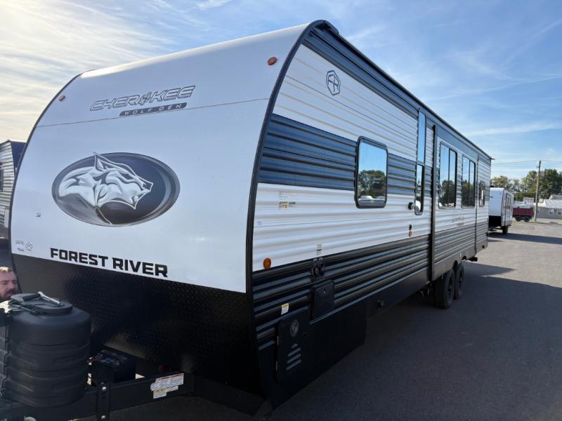 If the open road is calling your name, then answer it with one of these Forest River Cherokee Wolf Den travel trailers! You'll find better comfort, style and value in these trailers, giving you more freedom to enjoy the camping lifestyle. Like with all Forest River products, the Wolf Den features durable construction materials and convenient amenities, such as outdoor storage and battery disconnect. With at least one slide in each model, you'll enjoy open living spaces, along with full bath and kitchen amenities, and comfortable sleeping arrangements.