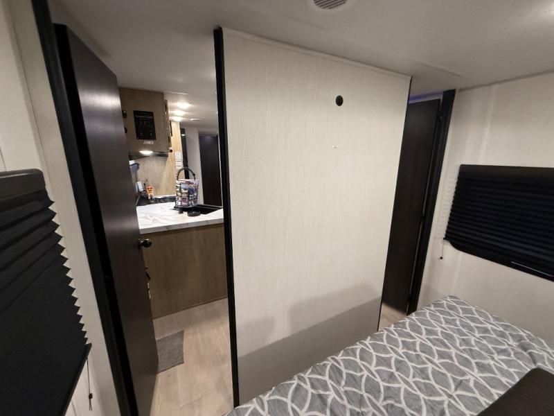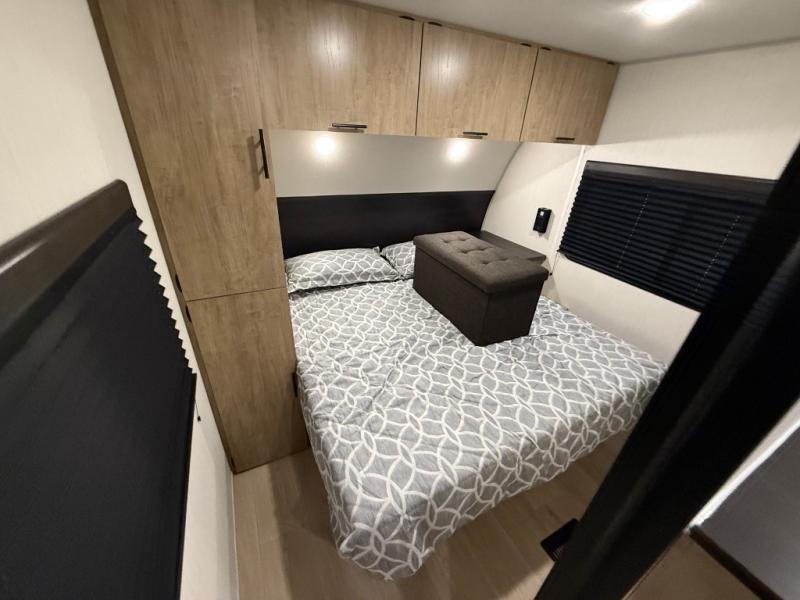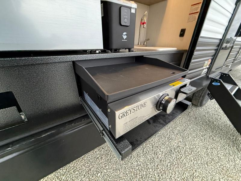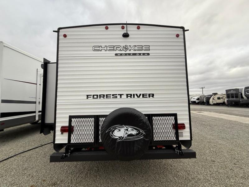 If the open road is calling your name, then answer it with one of these Forest River Cherokee Wolf Den travel trailers! They are built with an aerodynamic smooth radius front profile, a one-piece walkable decked roof, and a Cherokee exclusive stable step with oversized landing. There are also four stabilizer jacks outside, along with ladder prep, a premium wheel package and exclusive solar thermo controlled reflective tinted safety glass windows. The seamless countertops inside will be easy to keep clean, and the premium bedding will have you feeling right at home. There are also USB-C charging stations to keep your electronics charged and ready to go, plus many more stand-out features!