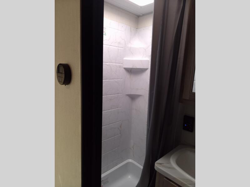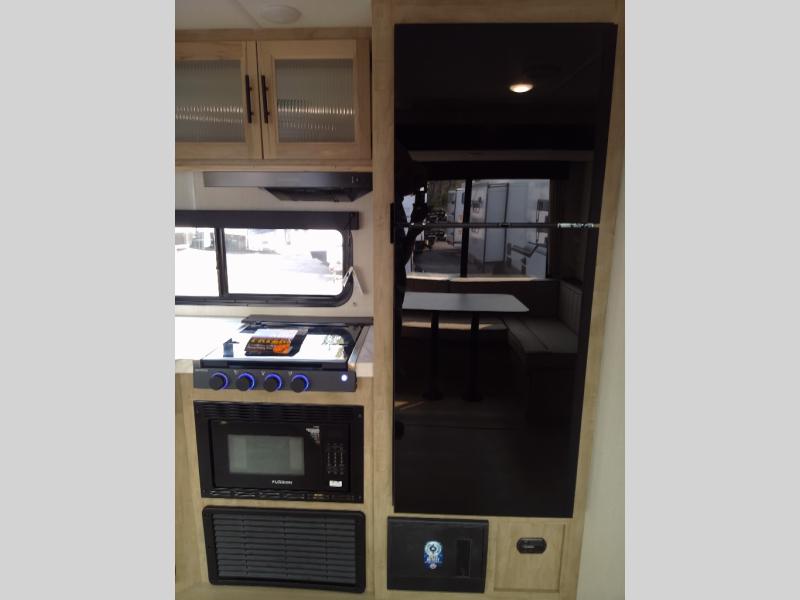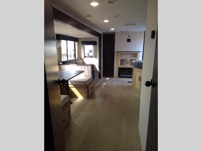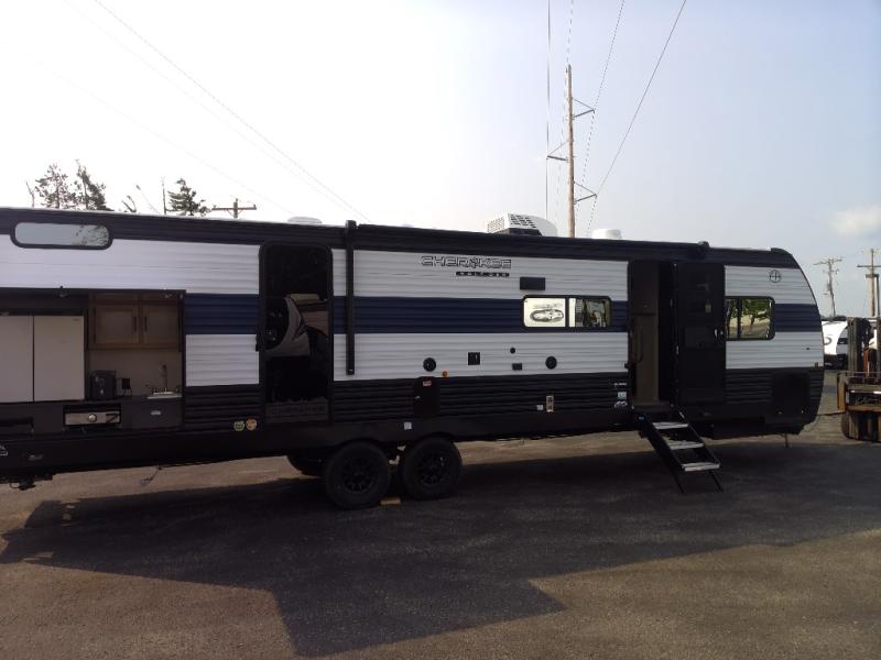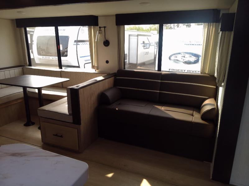 If the open road is calling your name, then answer it with one of these Forest River Cherokee Wolf Den travel trailers! They are built with an aerodynamic smooth radius front profile, a one-piece walkable decked roof, and a Cherokee exclusive stable step with oversized landing. There are also four stabilizer jacks outside, along with ladder prep, a premium wheel package and exclusive solar thermo controlled reflective tinted safety glass windows. The seamless countertops inside will be easy to keep clean, and the premium bedding will have you feeling right at home. There are also USB-C charging stations to keep your electronics charged and ready to go, plus many more stand-out features!