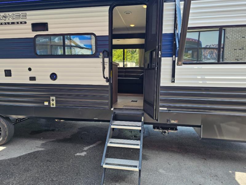 Answer the call of the open road in this feature-packed bunkhouse travel trailer! With double slide outs and multiple sleeping areas, the Wolf Den 301BH is built for family adventures and relaxing getaways alike.