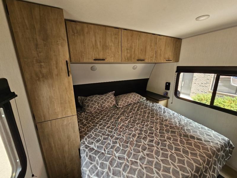 Front Private Bedroom with walk-around RV king bed and dual bedside wardrobes
