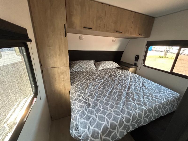 If the open road is calling your name, then answer it with one of these Forest River Cherokee Wolf Den travel trailers! They are built with an aerodynamic smooth radius front profile, a one-piece walkable decked roof, and a Cherokee exclusive stable step with oversized landing. There are also four stabilizer jacks outside, along with ladder prep, a premium wheel package and exclusive solar thermo controlled reflective tinted safety glass windows. The seamless countertops inside will be easy to keep clean, and the premium bedding will have you feeling right at home. There are also USB-C charging stations to keep your electronics charged and ready to go, plus many more stand-out features!