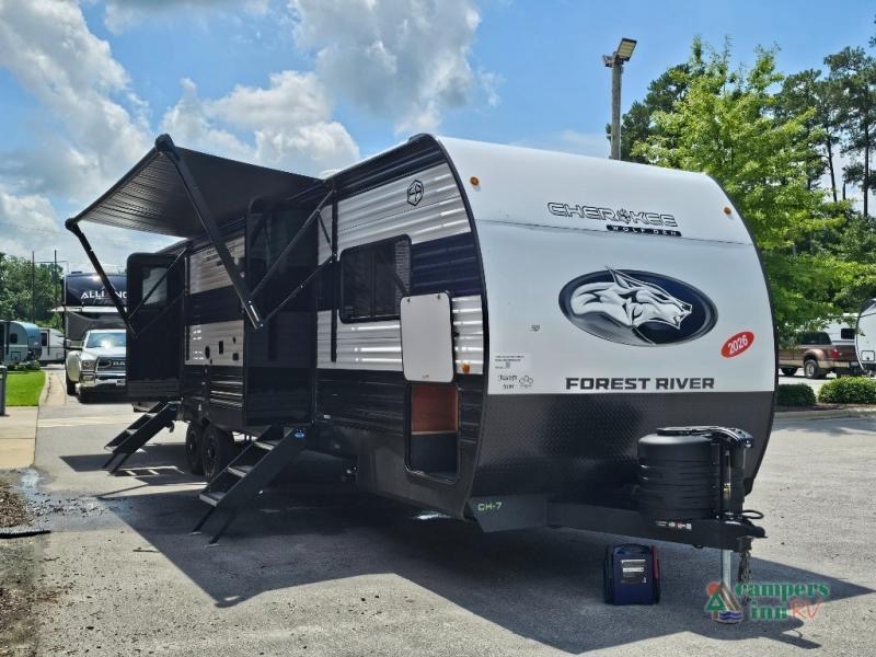 If the open road is calling your name, then answer it with one of these Forest River Cherokee Wolf Den travel trailers! You'll find better comfort, style and value in these trailers, giving you more freedom to enjoy the camping lifestyle. Like with all Forest River products, the Wolf Den features durable construction materials and convenient amenities, such as outdoor storage and battery disconnect. With at least one slide in each model, you'll enjoy open living spaces, along with full bath and kitchen amenities, and comfortable sleeping arrangements.