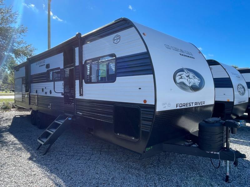 If the open road is calling your name, then answer it with one of these Forest River Cherokee Wolf Den travel trailers! You'll find better comfort, style and value in these trailers, giving you more freedom to enjoy the camping lifestyle. Like with all Forest River products, the Wolf Den features durable construction materials and convenient amenities, such as outdoor storage and battery disconnect. With at least one slide in each model, you'll enjoy open living spaces, along with full bath and kitchen amenities, and comfortable sleeping arrangements.