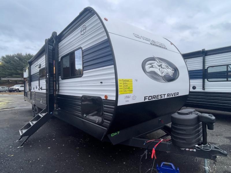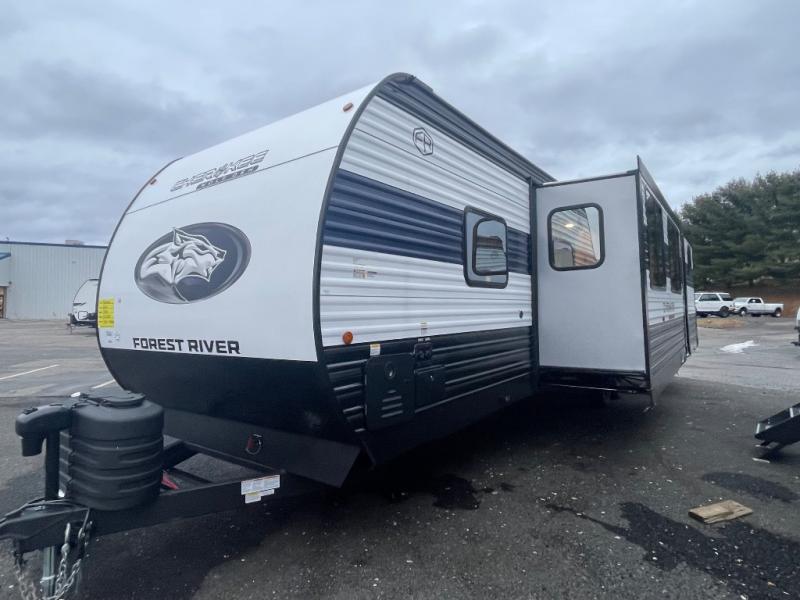 If the open road is calling your name, then answer it with one of these Forest River Cherokee Wolf Den travel trailers! You'll find better comfort, style and value in these trailers, giving you more freedom to enjoy the camping lifestyle. Like with all Forest River products, the Wolf Den features durable construction materials and convenient amenities, such as outdoor storage and battery disconnect. With at least one slide in each model, you'll enjoy open living spaces, along with full bath and kitchen amenities, and comfortable sleeping arrangements.