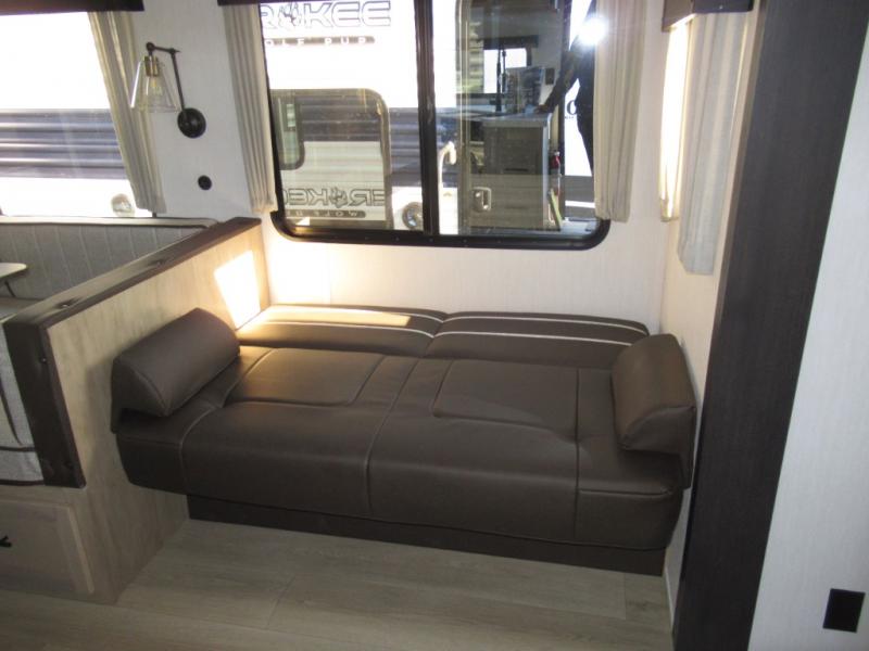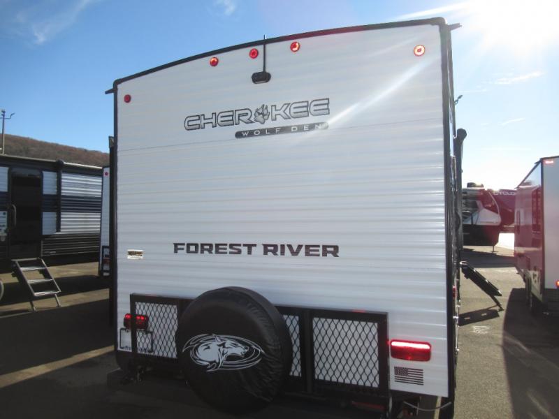 If the open road is calling your name, then answer it with one of these Forest River Cherokee Wolf Den travel trailers! You'll find better comfort, style and value in these trailers, giving you more freedom to enjoy the camping lifestyle. Like with all Forest River products, the Wolf Den features durable construction materials and convenient amenities, such as outdoor storage and battery disconnect. With at least one slide in each model, you'll enjoy open living spaces, along with full bath and kitchen amenities, and comfortable sleeping arrangements.