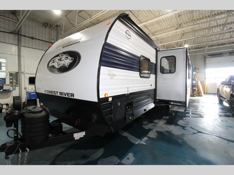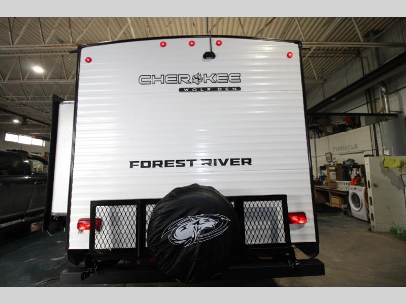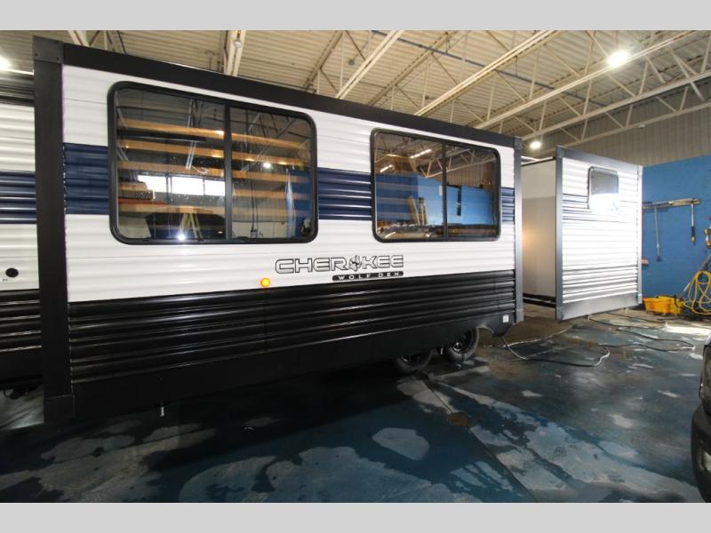 If the open road is calling your name, then answer it with one of these Forest River Cherokee Wolf Den travel trailers! You'll find better comfort, style and value in these trailers, giving you more freedom to enjoy the camping lifestyle. Like with all Forest River products, the Wolf Den features durable construction materials and convenient amenities, such as outdoor storage and battery disconnect. With at least one slide in each model, you'll enjoy open living spaces, along with full bath and kitchen amenities, and comfortable sleeping arrangements.