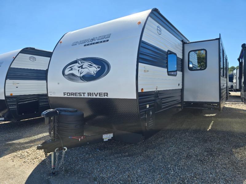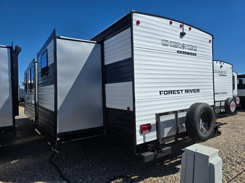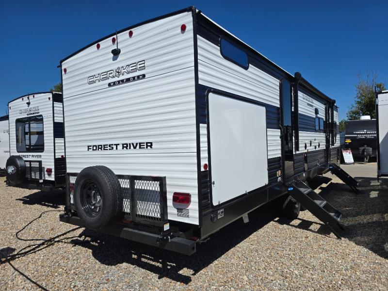 If the open road is calling your name, then answer it with one of these Forest River Cherokee Wolf Den travel trailers! You'll find better comfort, style and value in these trailers, giving you more freedom to enjoy the camping lifestyle. Like with all Forest River products, the Wolf Den features durable construction materials and convenient amenities, such as outdoor storage and battery disconnect. With at least one slide in each model, you'll enjoy open living spaces, along with full bath and kitchen amenities, and comfortable sleeping arrangements.