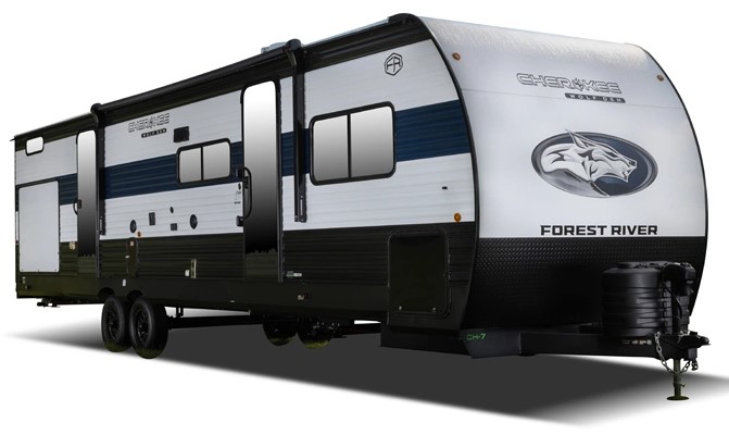 If the open road is calling your name, then answer it with one of these Forest River Cherokee Wolf Den travel trailers! They are built with an aerodynamic smooth radius front profile, a one-piece walkable decked roof, and a Cherokee exclusive stable step with oversized landing. There are also four stabilizer jacks outside, along with ladder prep, a premium wheel package and exclusive solar thermo controlled reflective tinted safety glass windows. The seamless countertops inside will be easy to keep clean, and the premium bedding will have you feeling right at home. There are also USB-C charging stations to keep your electronics charged and ready to go, plus many more stand-out features!
