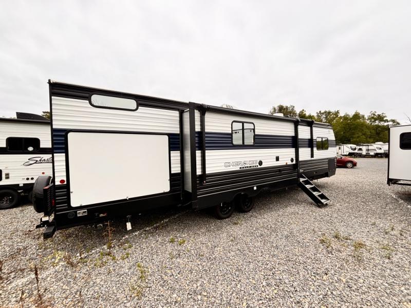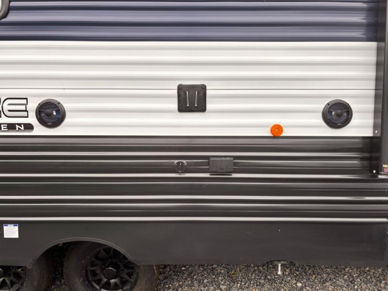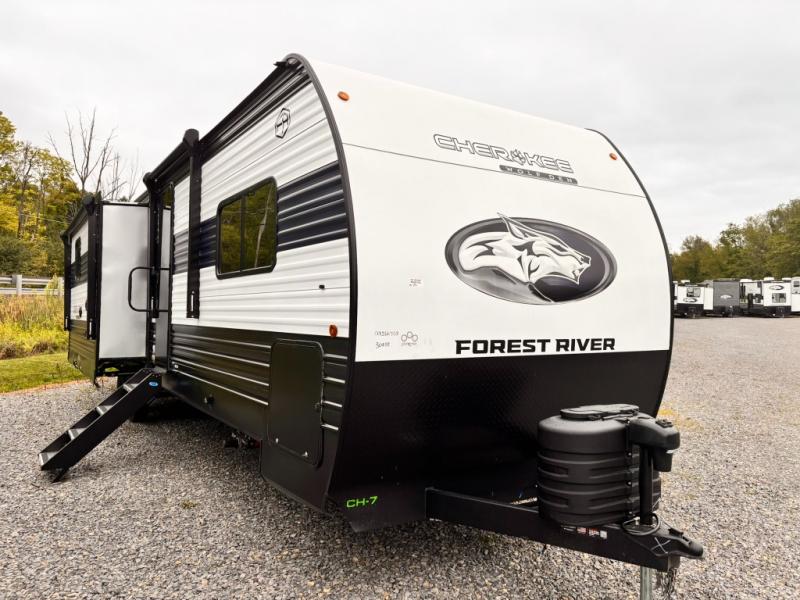 If the open road is calling your name, then answer it with one of these Forest River Cherokee Wolf Den travel trailers! They are built with an aerodynamic smooth radius front profile, a one-piece walkable decked roof, and a Cherokee exclusive stable step with oversized landing. There are also four stabilizer jacks outside, along with ladder prep, a premium wheel package and exclusive solar thermo controlled reflective tinted safety glass windows. The seamless countertops inside will be easy to keep clean, and the premium bedding will have you feeling right at home. There are also USB-C charging stations to keep your electronics charged and ready to go, plus many more stand-out features!