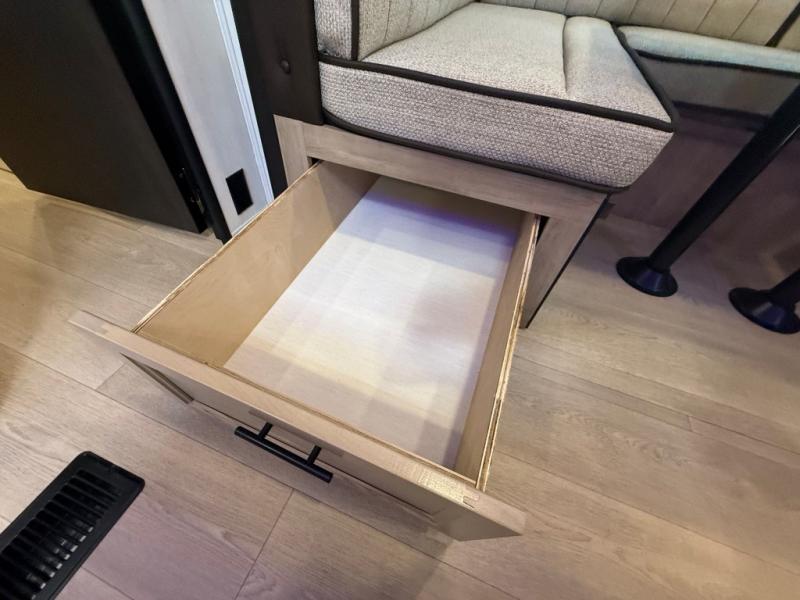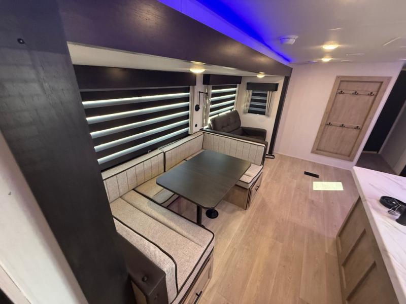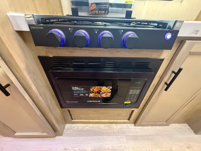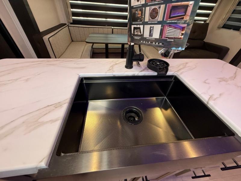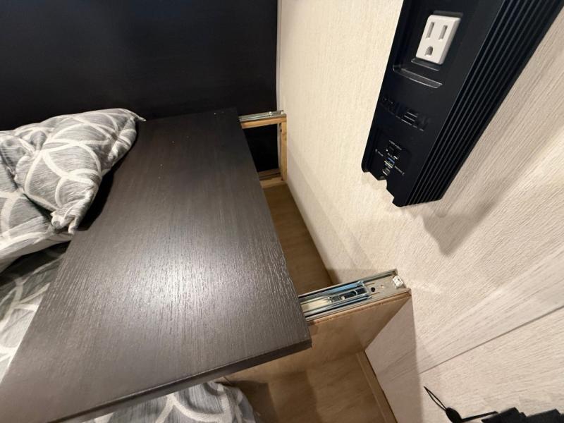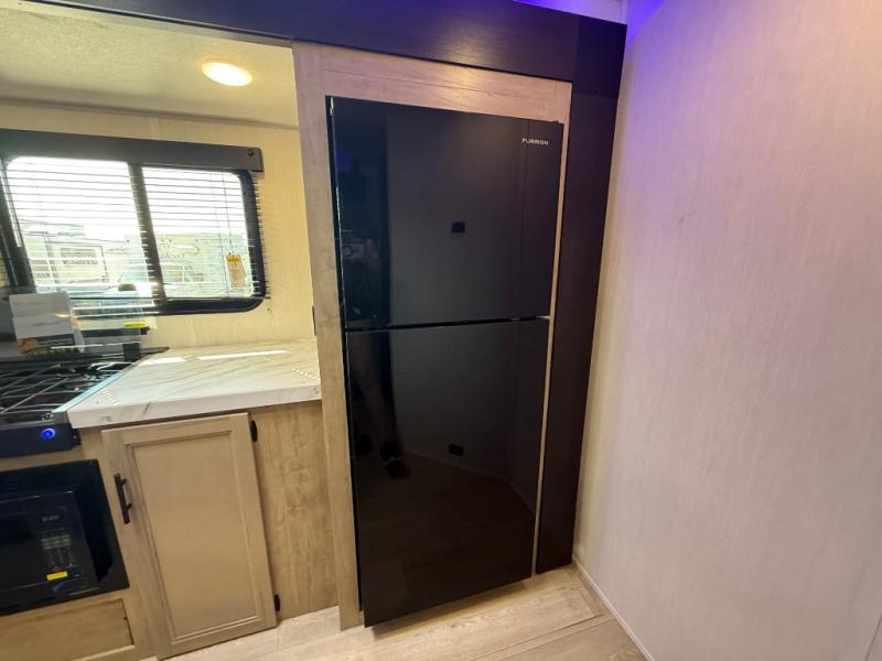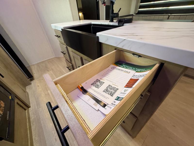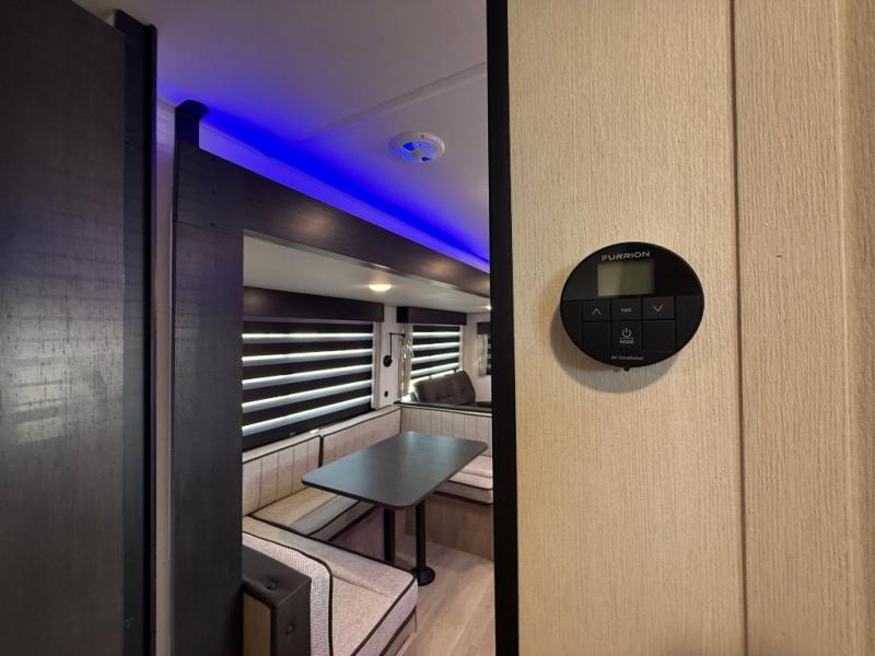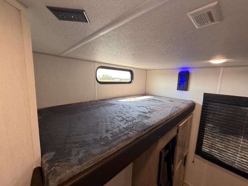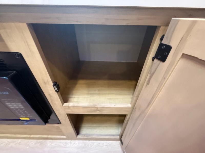 The whole gang will love this travel trailer with triple slides for more space. Your guests or the kids are sure to claim the rear private bunkhouse with a double bunk plus a flip-up bunk above a sofa and a TV mount if you want to add a television here. You'll have the front private bedroom with an RV king bed all to yourselves, and the full bath is close by for easy nighttime use. The middle combined kitchen and living area features dual opposing slides, a kitchen island, plus a U-shaped dinette and sofa. There is also an entertainment center with a fireplace and a hidden pantry behind for movies, snacks and more. Outside, two power awnings, exterior storage, and an outside kitchen makes it easier to spend more time outdoors!